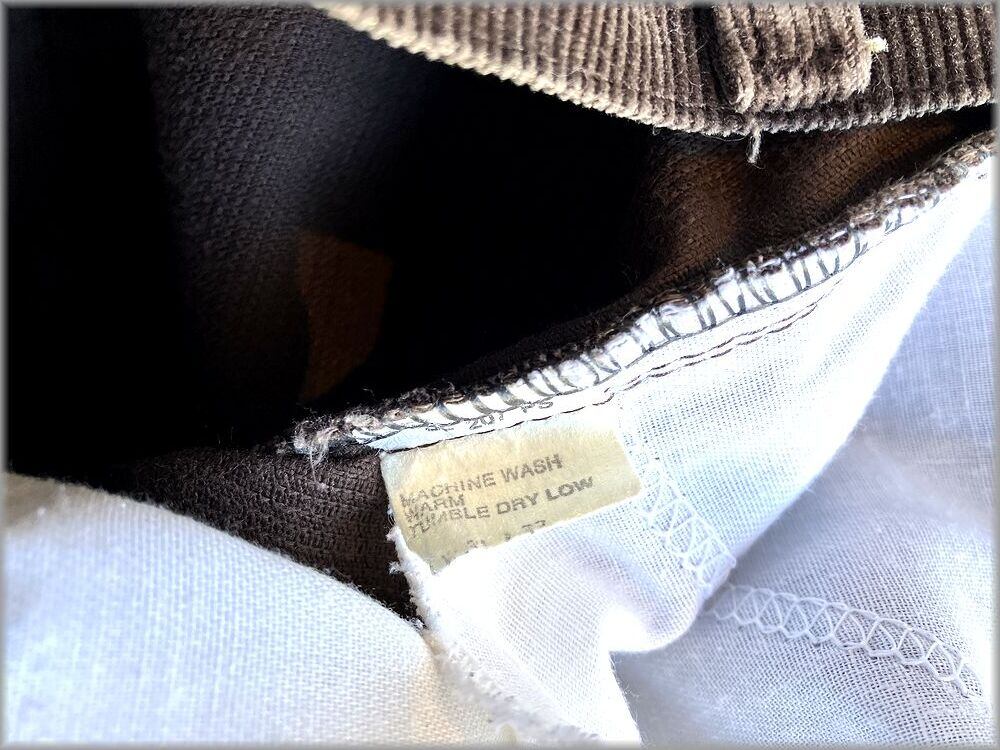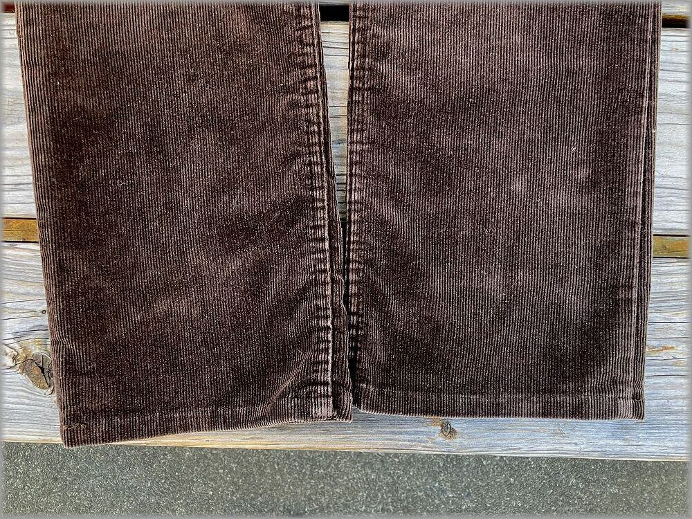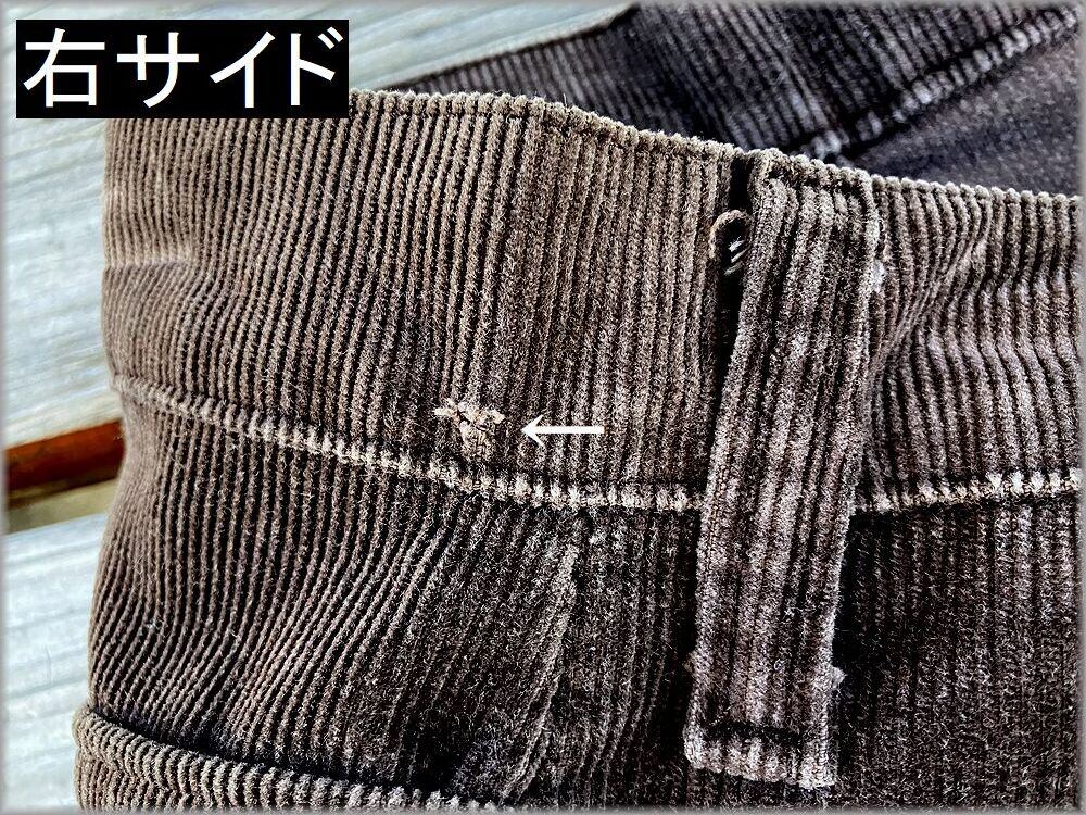 USEDです。ウエスト右側のコーデュロイに画像矢印先の小キズがあります。コーデュロイに少し擦れはありますが、使用感は少なめでコーデュロイはまだしっかりしています。目立つ程の問題はなく全体的にUSEDとしては良好な状態かと思います。店頭ではパンツハンガーにかけていますので、コーデュロイにパンツハンガーの跡があります。(ウォッシュしていけば消えていきます)