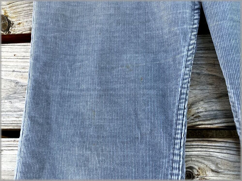 USEDです。コーデュロイに多少の使用感や少し汚れがありますが、目立つような問題はありません。USEDとしては問題無く着用いただける状態です。店頭ではパンツハンガーにかけていますので、コーデュロイにパンツハンガーの跡があります。(ウォッシュしていけば消えていきます)