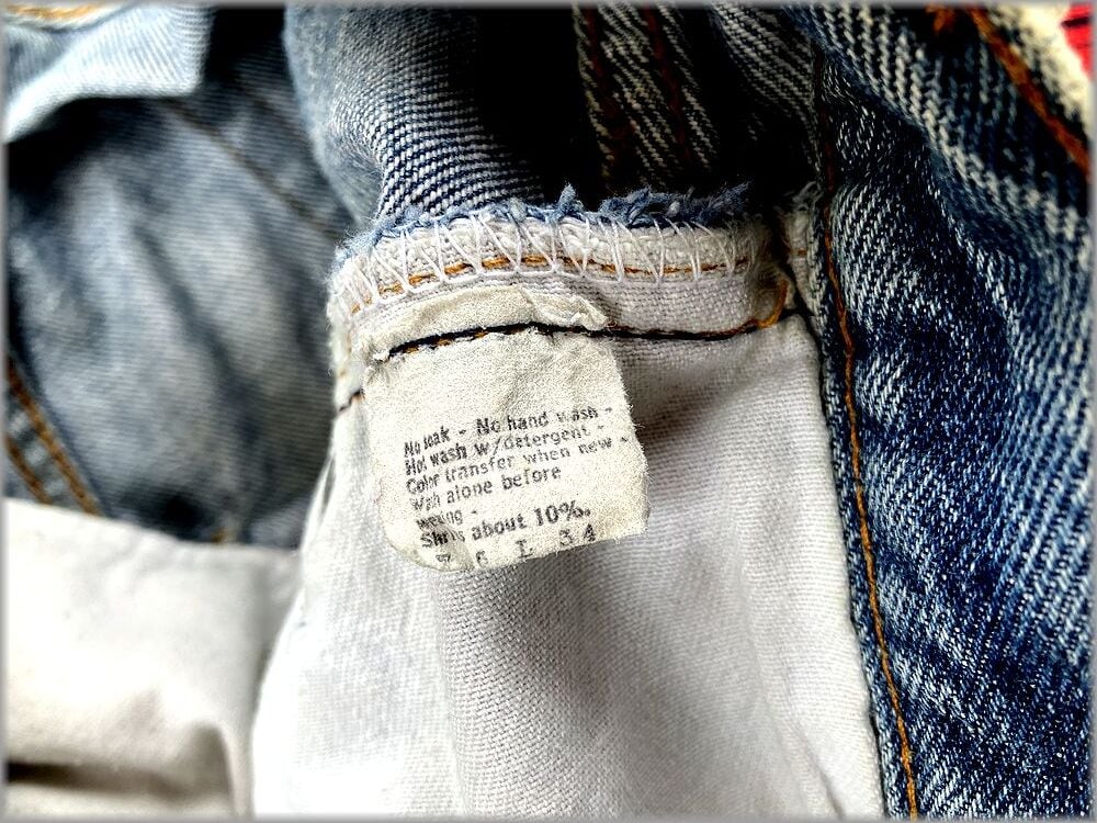 USEDです。紙パッチの破れがあります。左足前面膝辺りにリペアがあります。その他ポケット辺りや裾や股などに擦れたダメージがあります。少し汚れも見られます。主な部分は画像で載せてありますのでご確認ください。状態を一つ一つ説明するのは難しいので、状態が心配な方は店頭でご確認ください。