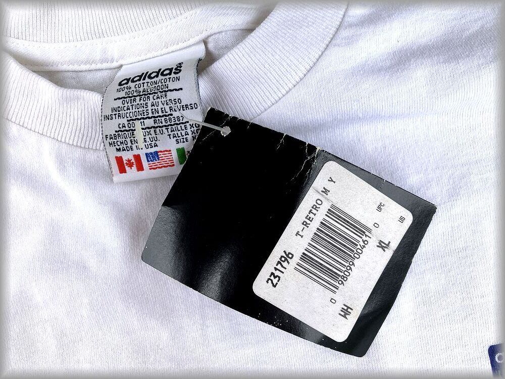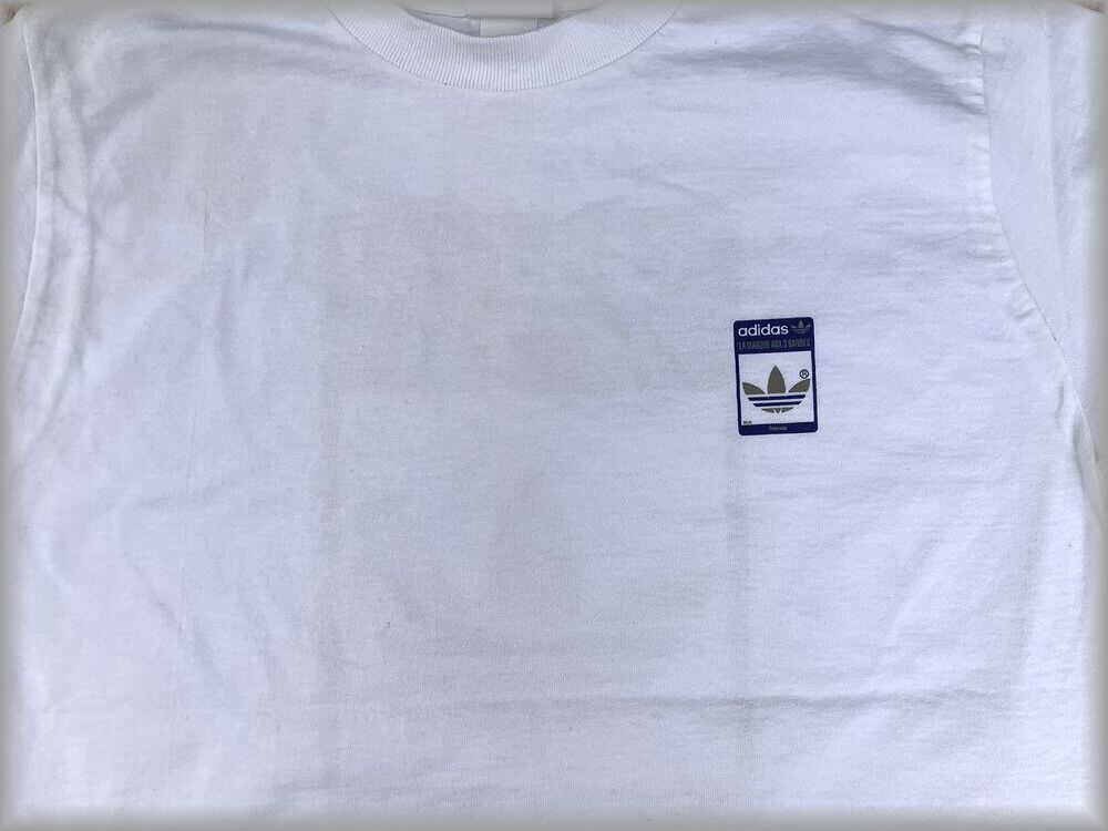 ★アディダス デッドストック 80s 90s USA製 Tシャツ 両面プリント size XL★検索 ビンテージ トレフォイル 万国旗タグ フランス古着