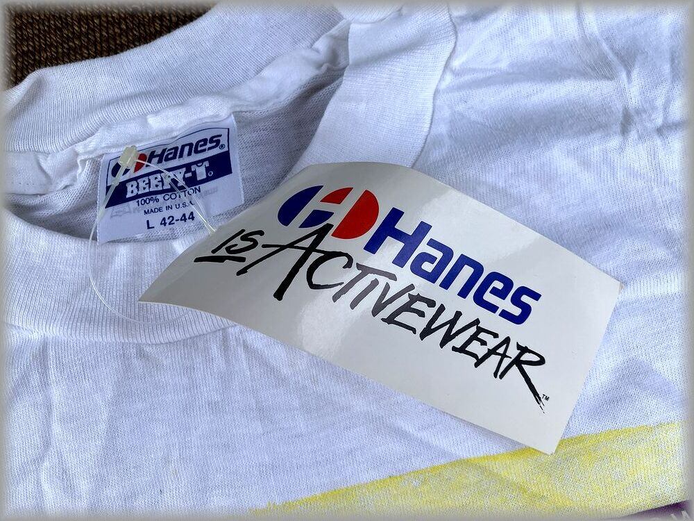 ★ヘインズ BEEFY-T デッドストック 80s 90s USA製 Tシャツ イベント物 size L★検索 ビンテージ アメリカ 古着 HANES アート プリント