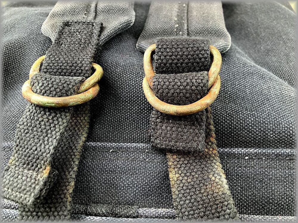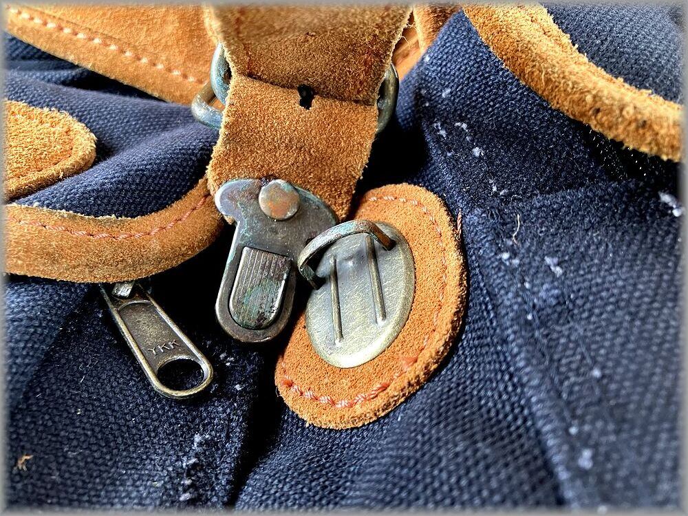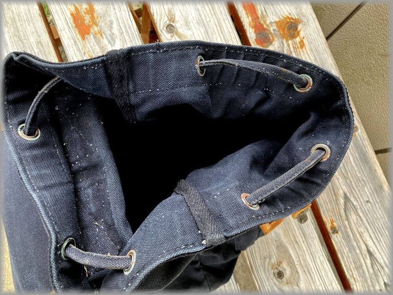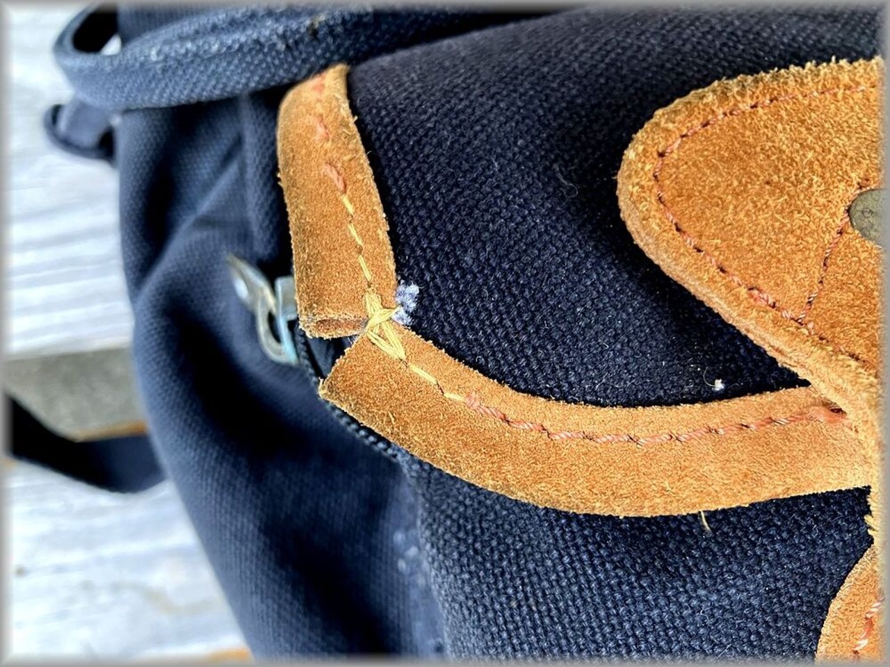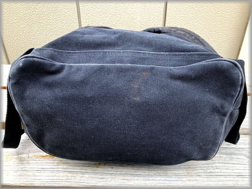 USEDです。金具にサビがあります。スエードに多少の擦れがあります。右側のポケットのトリムのスエード部分に切れている部分があります。(画像参照)キャンバス地に多少のフェードや汚れがあります。目立つ程の問題はないのでUSEDとしては問題無く使用できる状態かと思いますが、状態が心配な方は店頭でご確認ください。