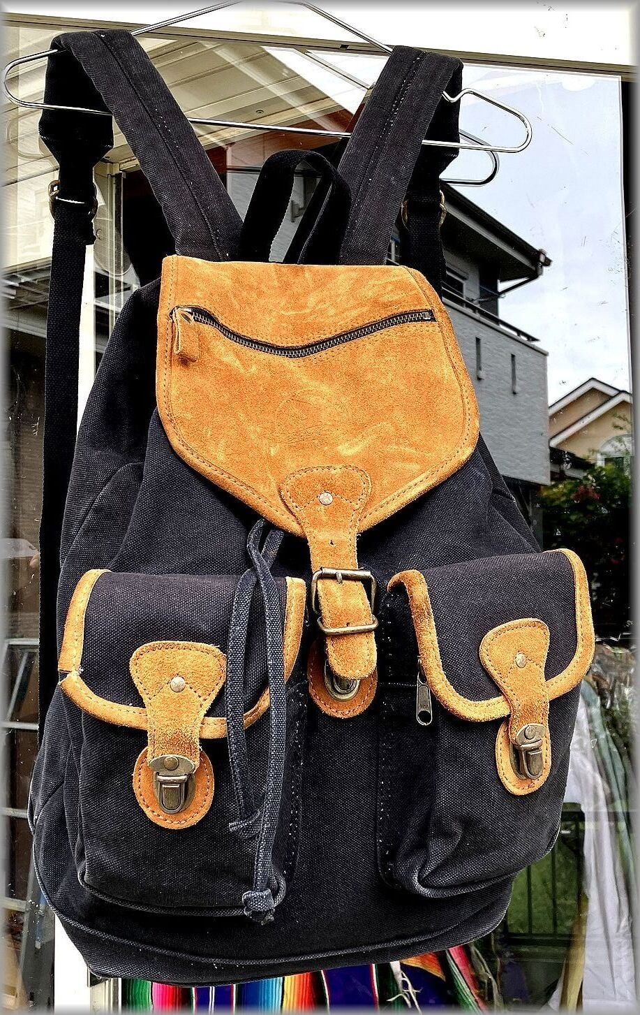 ★エディーバウアー 90s リュック キャンバス スエード ブラック★検索 ビンテージ オールド バッグ アメリカ 古着 アウトドア