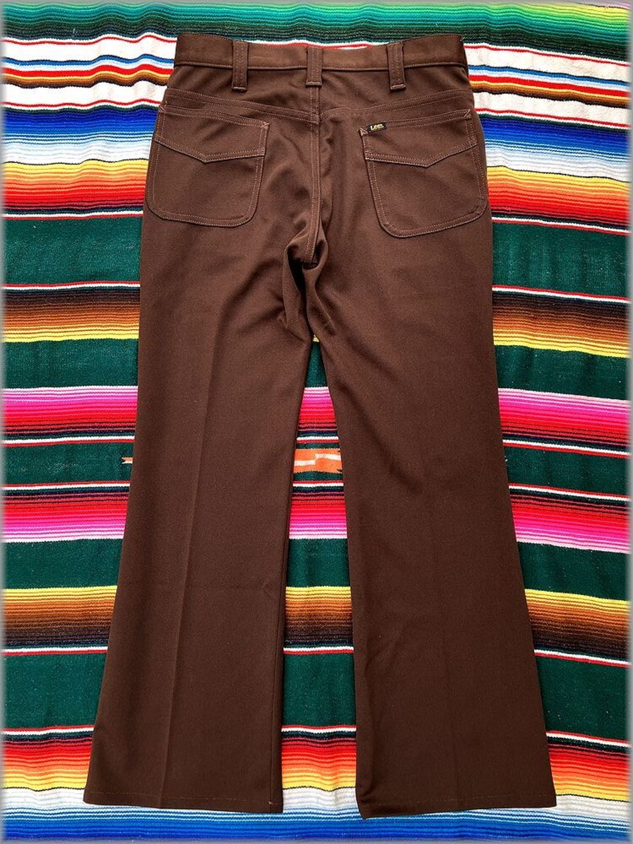 ★Lee ビンテージ 70s 80s USA製 ポリエステル フレアパンツ W78cm位 タロン42ジッパー ユニオンチケット★検索 ポリパン ブーツカット ベルボトム アメリカ 古着 ディスコ ヒッピー