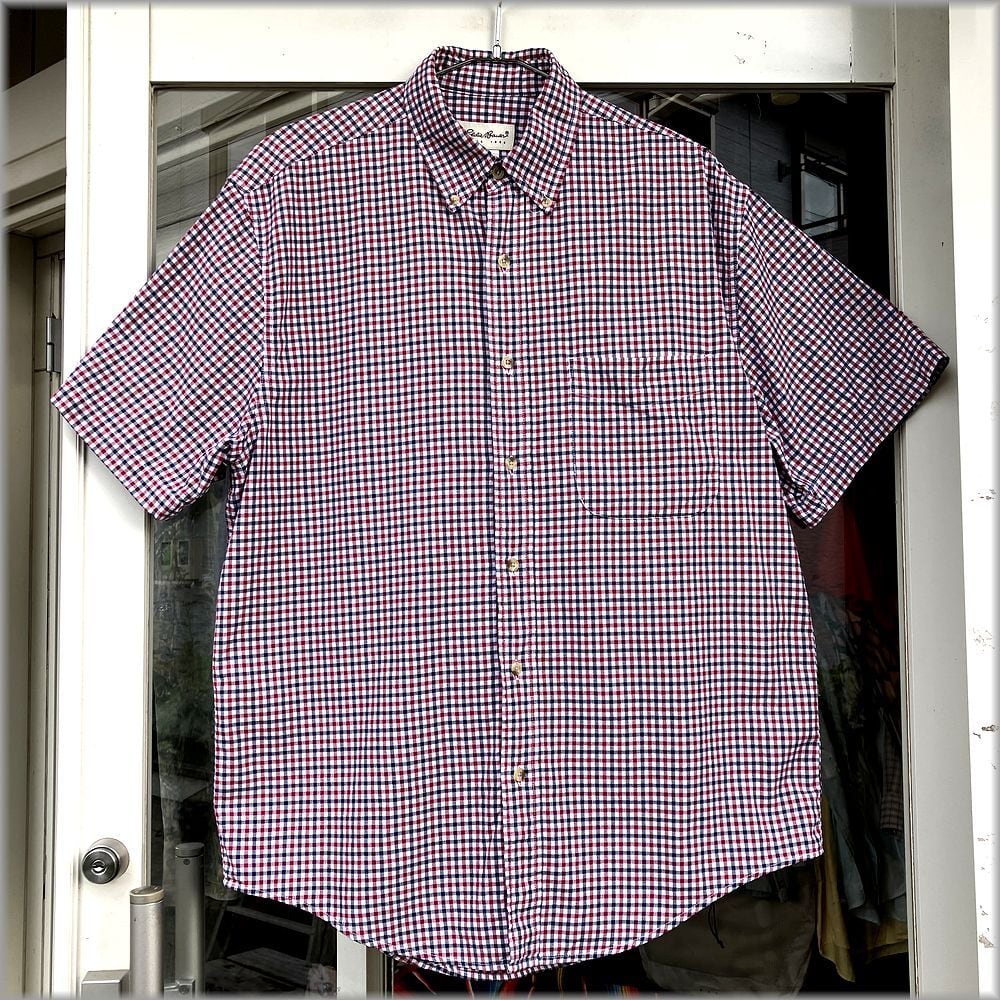 ★エディーバウアー 状態良好 90s ギンガムチェック ボタンダウン 半袖シャツ★検索 ビンテージ y2k アメカジ アウトドア 古着
