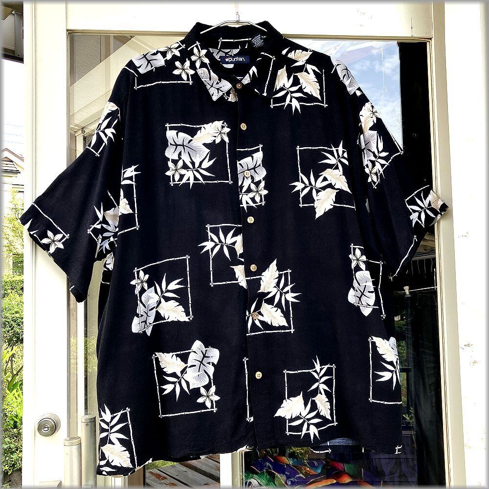 ★puritan ピューリタン 90s 00s ボックス型 半袖 レーヨンシャツ ブラックベース size XL ビッグサイズ★検索 ビンテージ アメリカ 古着