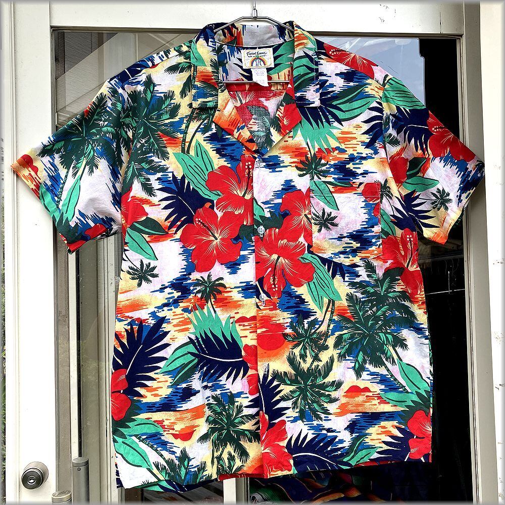 ★Tropical Essence ハワイ製 開襟 ボックス型 半袖 アロハシャツ ハワイアンシャツ size L★検索 ビンテージ 80s 90s USA製 アメリカ 古着