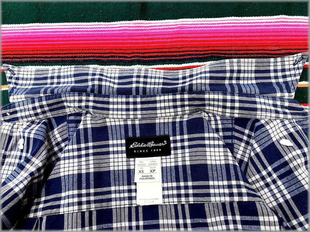 ★Eddie Bauer エディーバウアー ~00s チェック柄 長袖 ボタンダウンシャツ size XS 大きめ★検索 ビンテージ 90s y2k アウトドア 古着