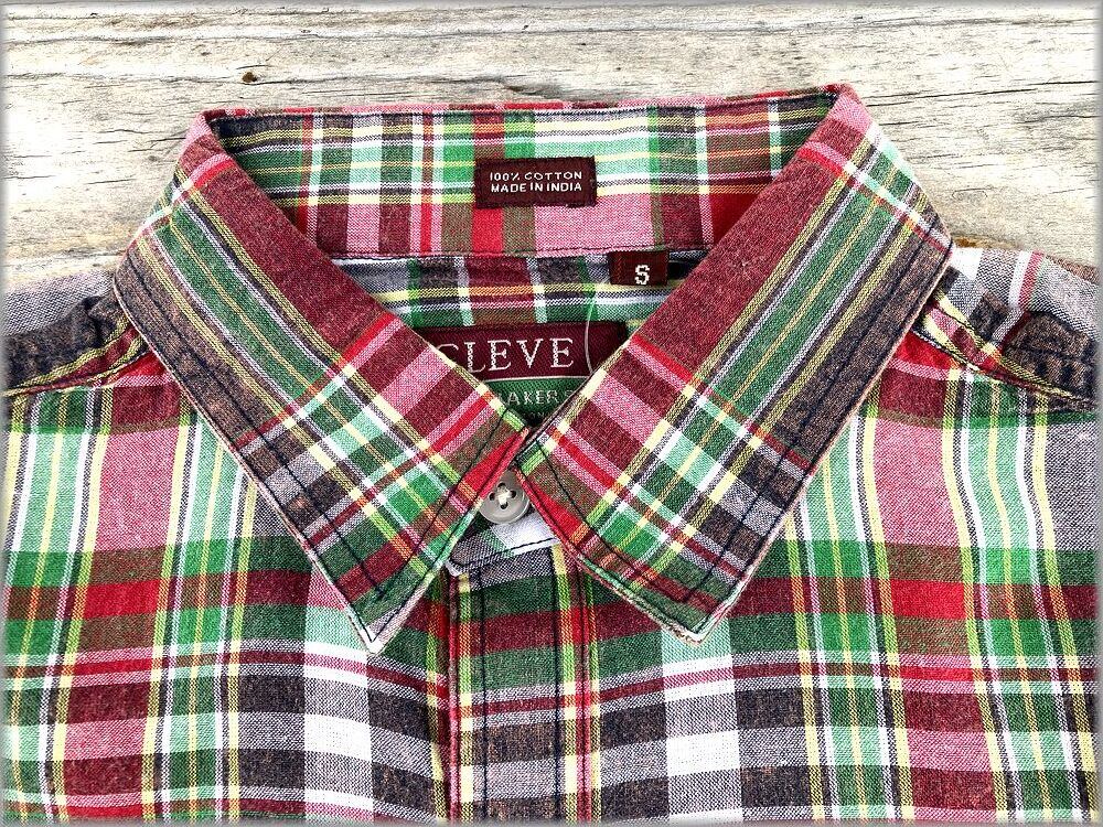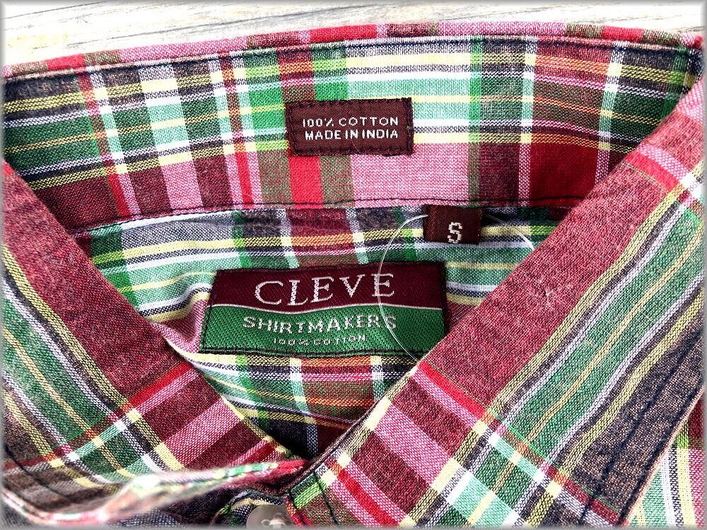 ★CLEVE デッドストック インディアンマドラス 半袖シャツ size S ①★検索 コットン マドラスチェック アメリカ 古着 トラッド アメカジ