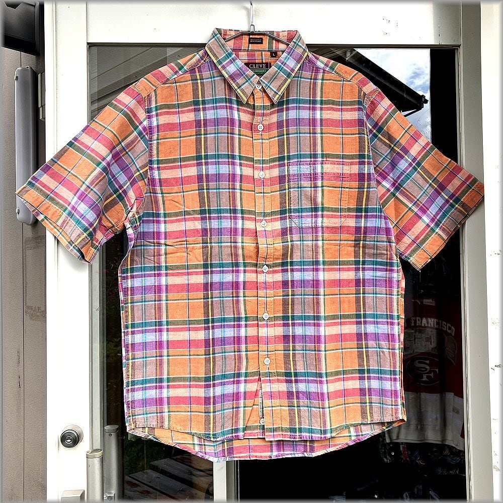 ★CLEVE デッドストック インディアンマドラス 半袖シャツ size L★検索 コットン マドラスチェック アメリカ 古着 トラッド アメカジ