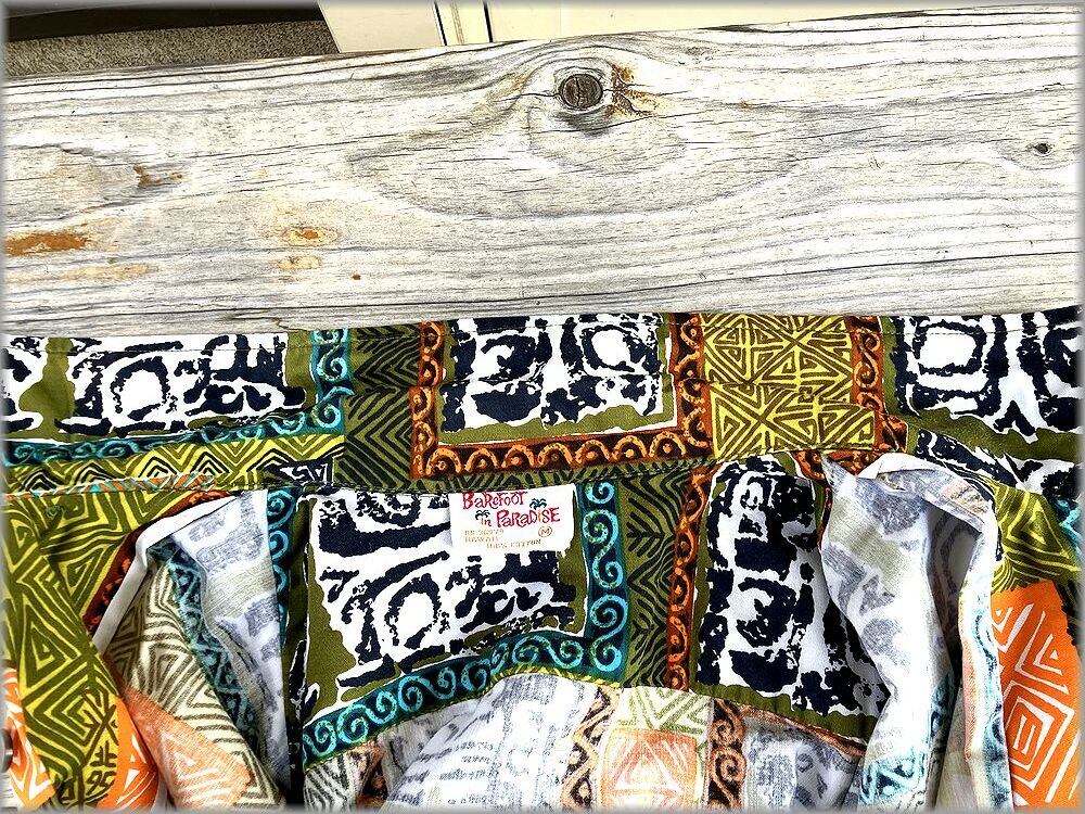 ★GO BAREFOOT ゴーベアフット 状態良好 70s ボックス型 開襟 半袖シャツ アロハシャツ M 総柄★検索 ビンテージ 古着 ハワイアン