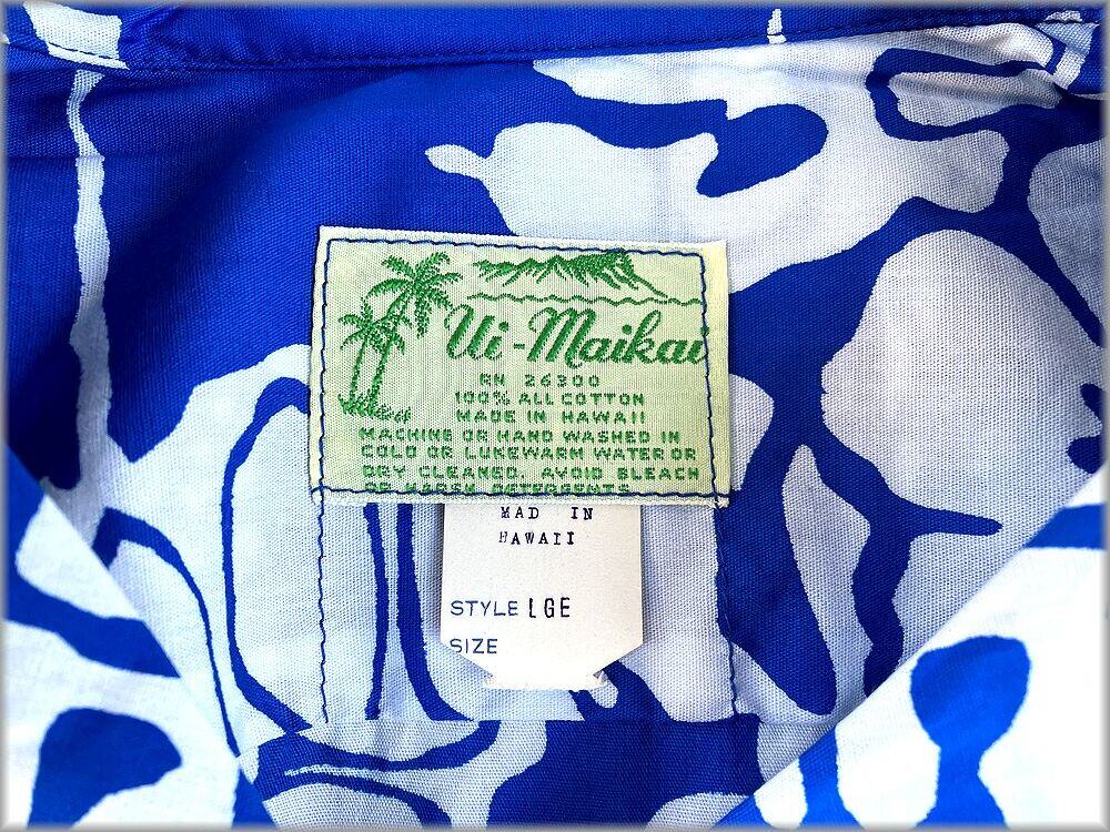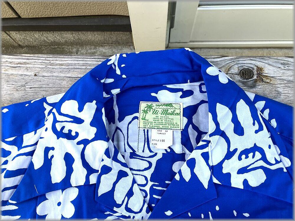 ★Ui-Maikai デッドストック 60s 70s ビンテージ コットン 半袖 アロハシャツ ハワイアンシャツ 柄物★検索 開襟 オープンカラー 古着