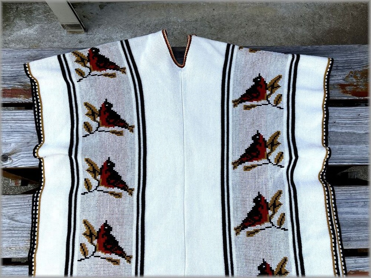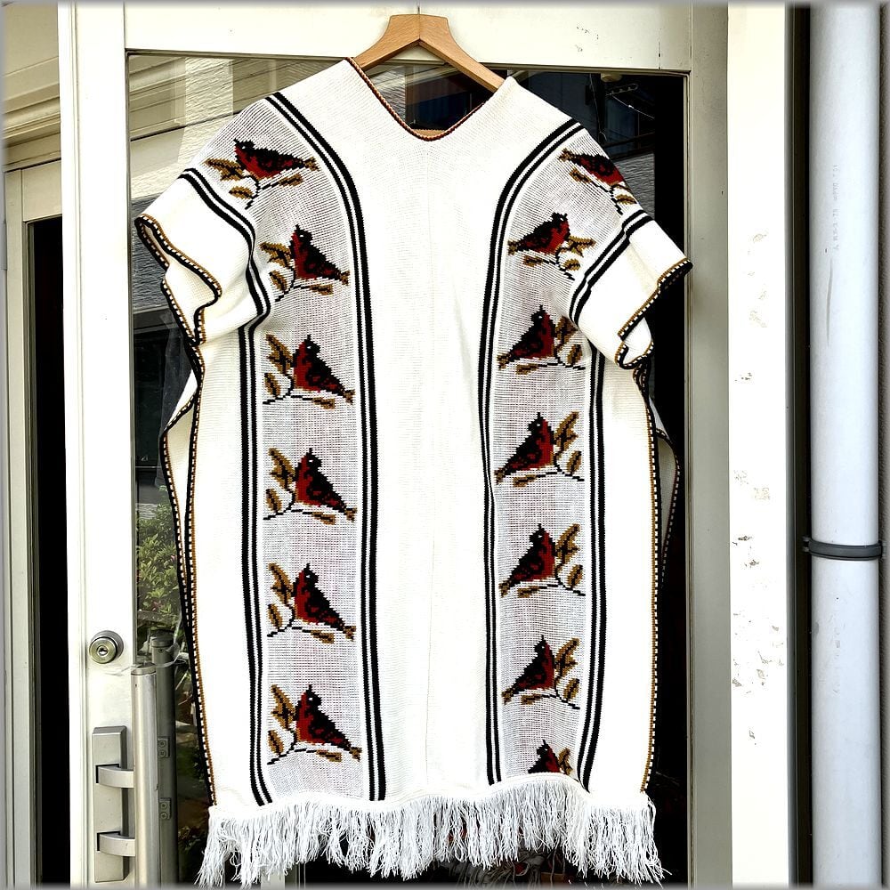 ★レディース ビンテージ 70s ロング丈 ニット カーディガン ベスト 鳥柄 アメリカ買付★検索 ガウン ジャケット コート 古着 60s 80s