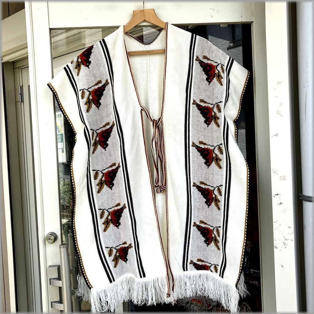実寸 着丈(首の付け根から裾 下のフリンジは含まず)約80センチ 身幅(脇の下から脇の下 前の合わせがはっきりしないので大体で採寸) 約62センチ 肩幅 約70センチ