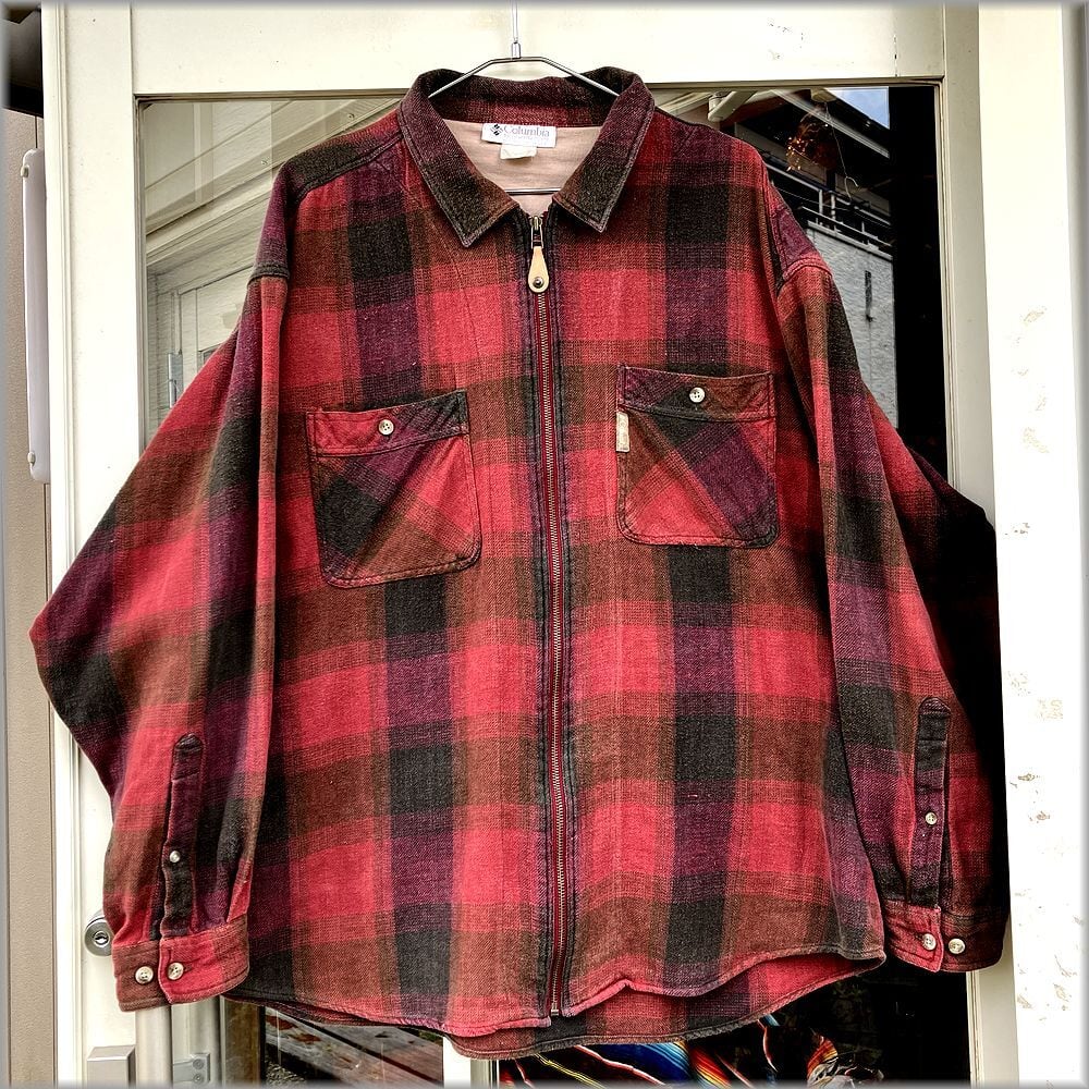 ★コロンビア 90s フランネル オンブレチェック シャツ ジャケット ビッグサイズ★検索 ビンテージ 80s アウトドア ネルシャツ 古着 グランジ