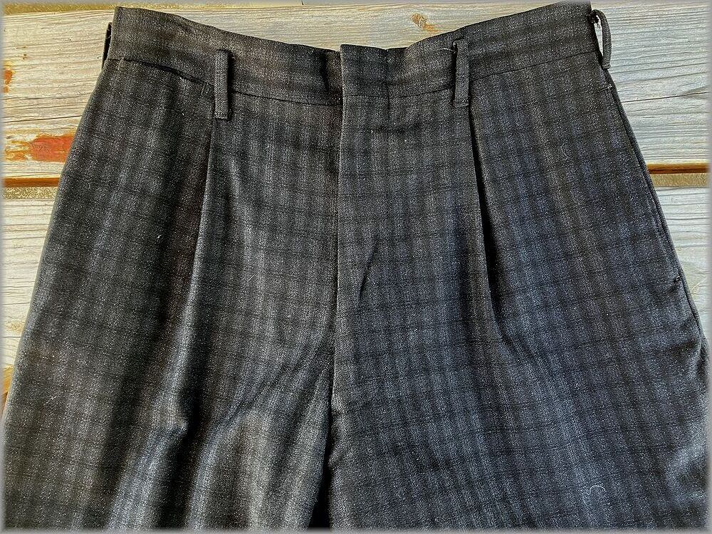 ★ビンテージ 50s ウール スラックス パンツ W76cm位 ブラック 黒 CONMARジッパー アメリカ買付★検索 ロカビリー ネップ カスリ 古着 オンブレチェック