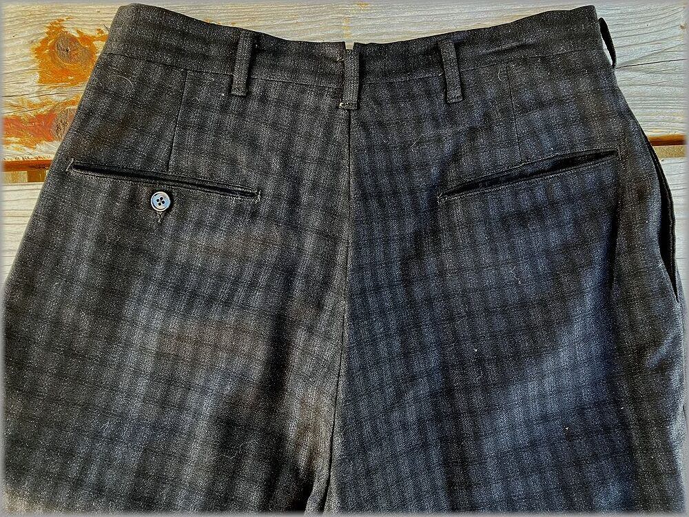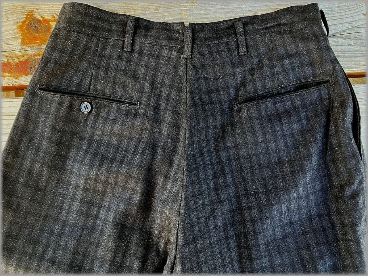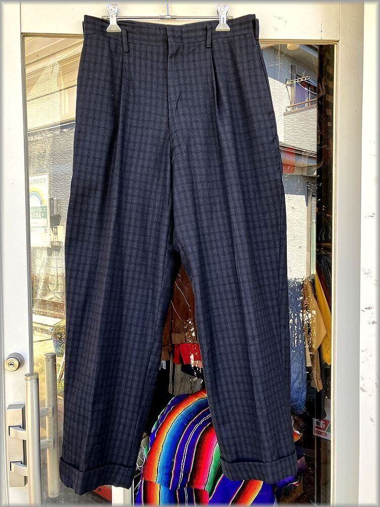USEDです。スレーキなど内側の白い生地に汚れがあります。ウールに画像のような虫食いの小キズがありますが、目立つような問題はありません。ビンテージのウールスラックスとしては状態は良好な部類の状態じと思いますが、状態が心配な方は店頭でご確認ください。
