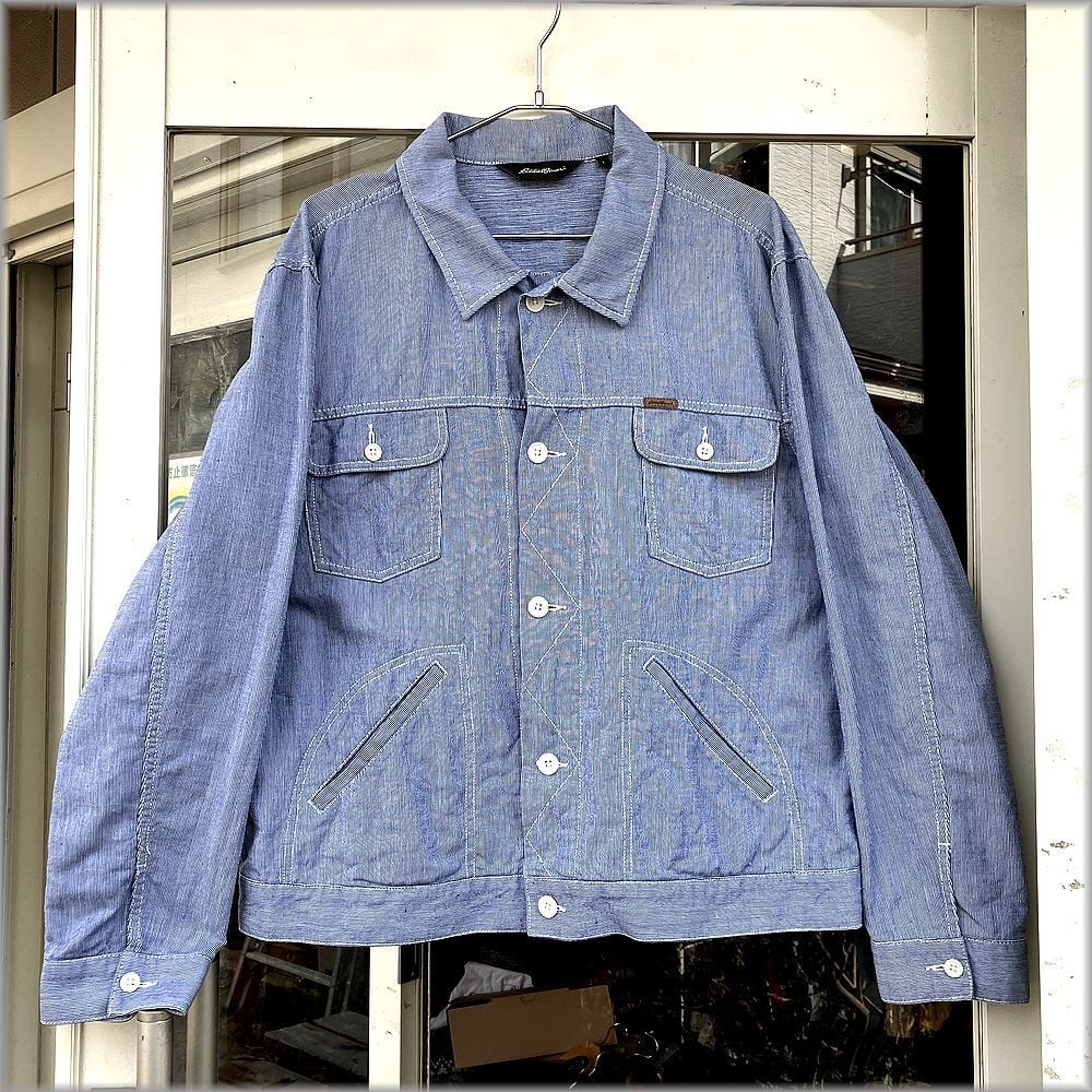 ★エディーバウアー 00s ピンストライプ ジャケット size L ビッグサイズ★検索 古着 短丈 ワーク アウトドア 90s