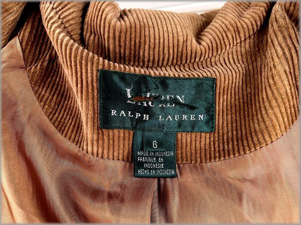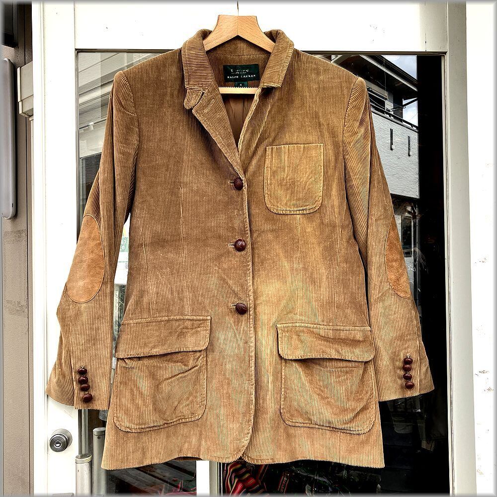 ★ローレン ラルフローレン 90s レディース 3つボタン 太畝 コーデュロイ ジャケット レザーエルボーパッチ付 size 6 アメリカ買付★検索 古着 テーラード