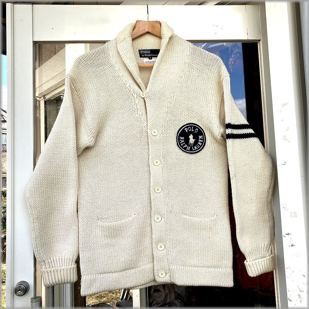 ★ポロ ラルフローレン 80s ショールカラー カーディガン size M★検索 ビンテージ 90s 古着 セーター ニット ジャケット rrl カントリー