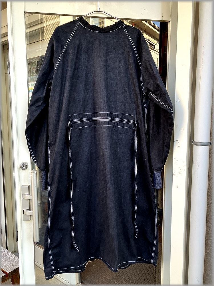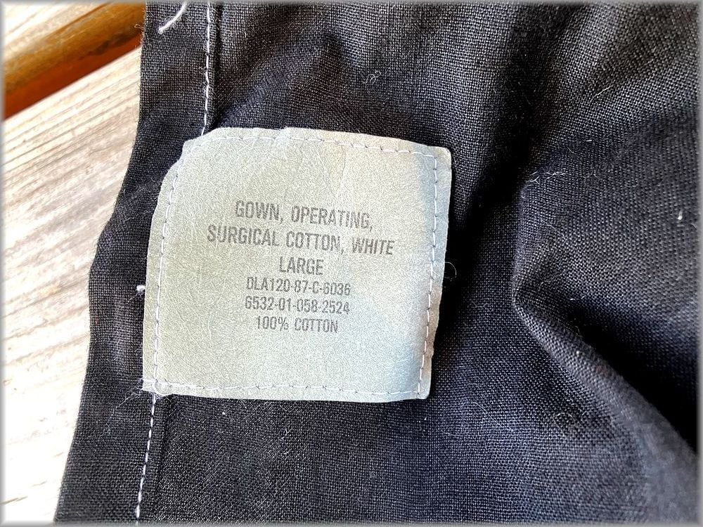 ★87年 デッドストック 米軍 サージカル ガウン size L 黒 後染め★検索 ビンテージ ジャケット コート ミリタリー ワンピース 古着