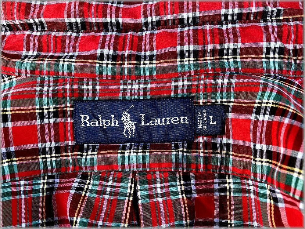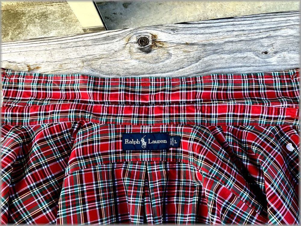 ★ポロ ラルフローレン 状態良好 90s チェック柄 3点留め ボタンダウン 長袖シャツ size L マチ付き ポニー無し★検索 古着 アメリカ