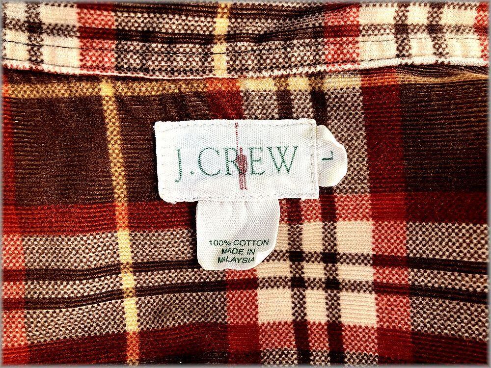 ★Jクルー J.CREW 90s 巨人タグ チェック柄 細畝 コーデュロイ 長袖シャツ size L ビッグシルエット アメリカ買付★検索 ビンテージ 古着 80s