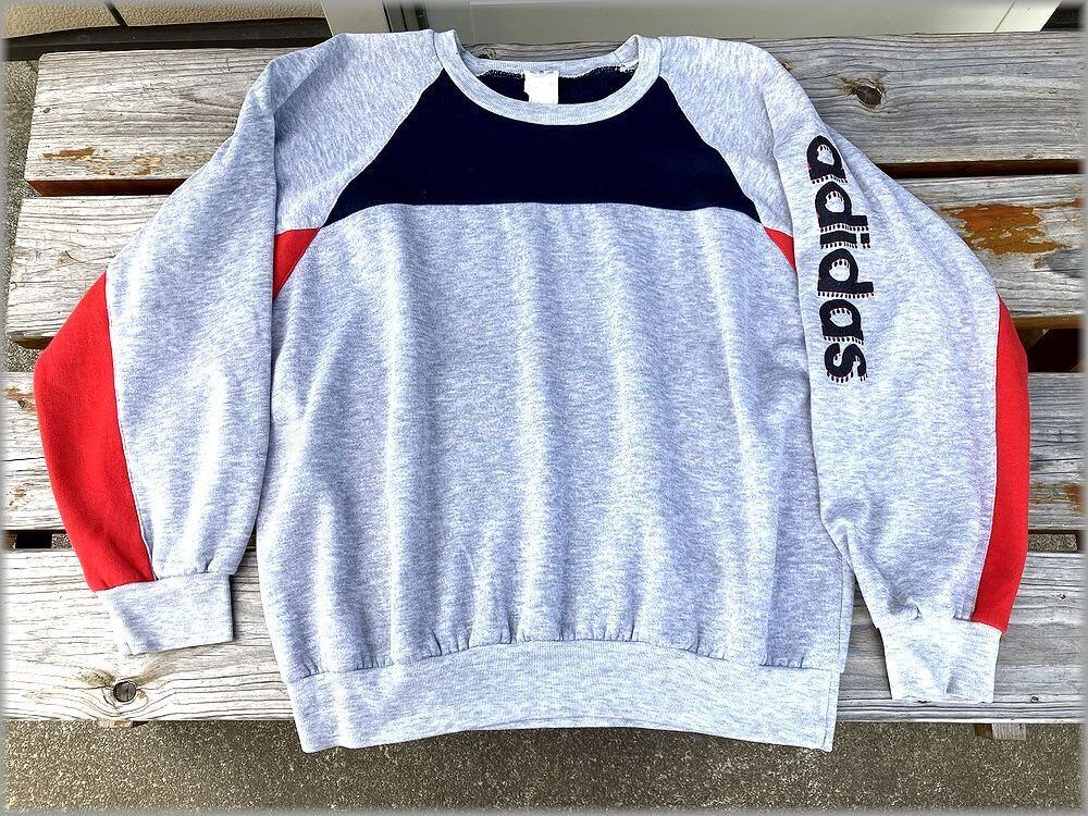★アディダス 80s ビンテージ スウェット トレーナー 袖プリント アメリカ買付★検索 70s 90s 古着 オールド Tシャツ ヒップホップ