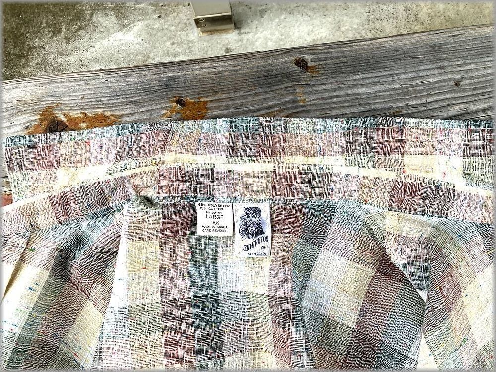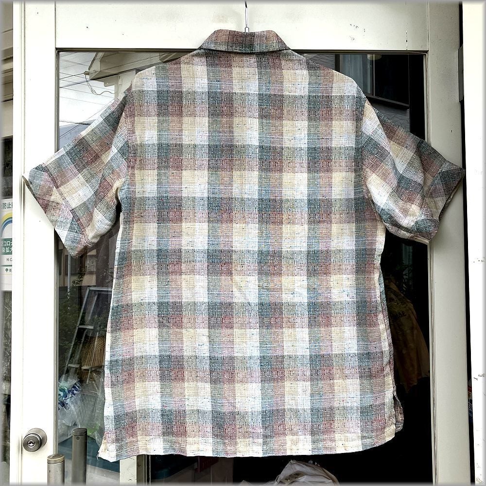 ★KENNINGTON ケニントン 70s ビンテージ チェック柄 ネップ入り 半袖シャツ size L アメリカ買付★検索 アメカジ 古着 ヒッピー ディスコ