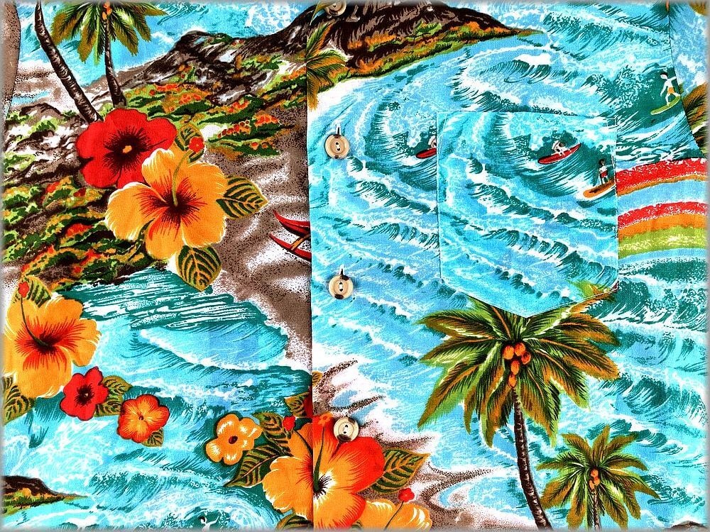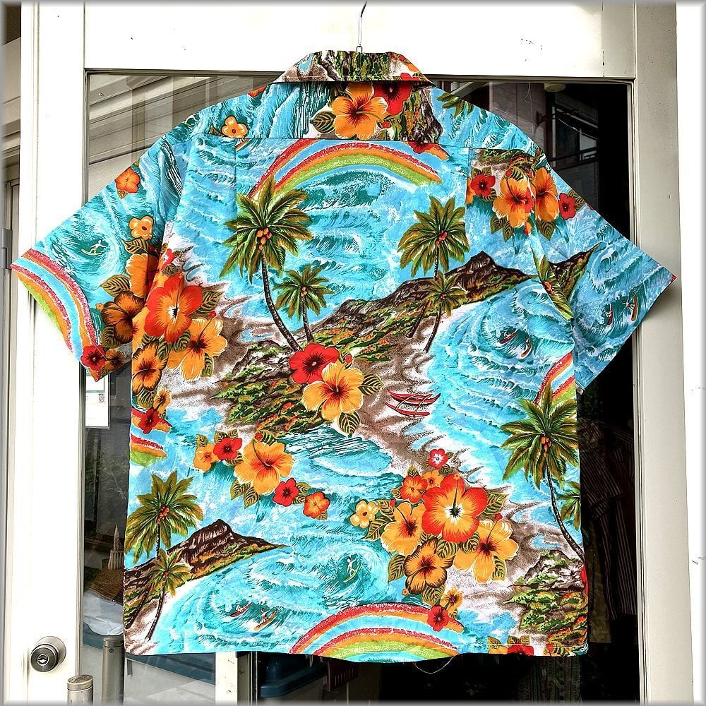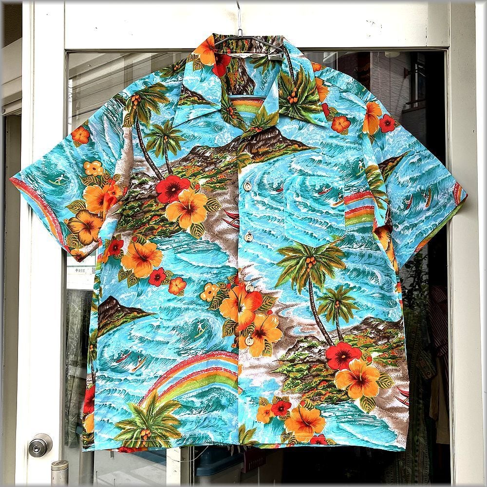 Waikiki76 70s ボックス型 開襟 アロハシャツ 柄物