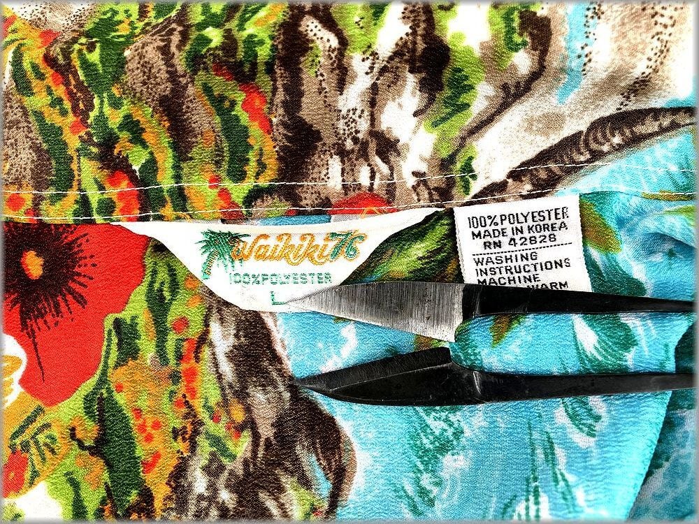 ★Waikiki76 70s ポリエステル ボックス型 開襟 アロハシャツ 柄物 size L アメリカ買付★検索 ビンテージ ハワイアンシャツ 古着