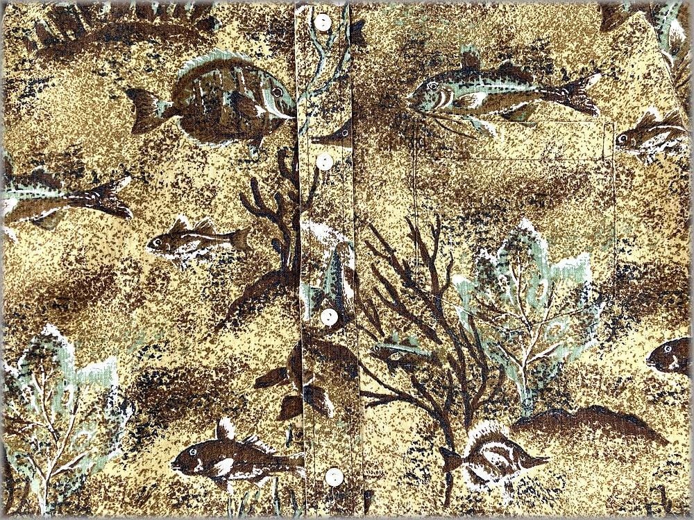 ★Nui Nalu ハワイ製 80s 90s ボックス型 半袖シャツ size M 魚柄★検索 ビンテージ アロハシャツ ハワイアンシャツ アメリカ 古着