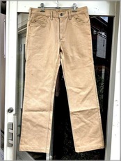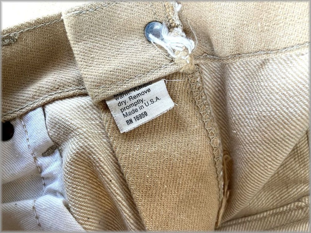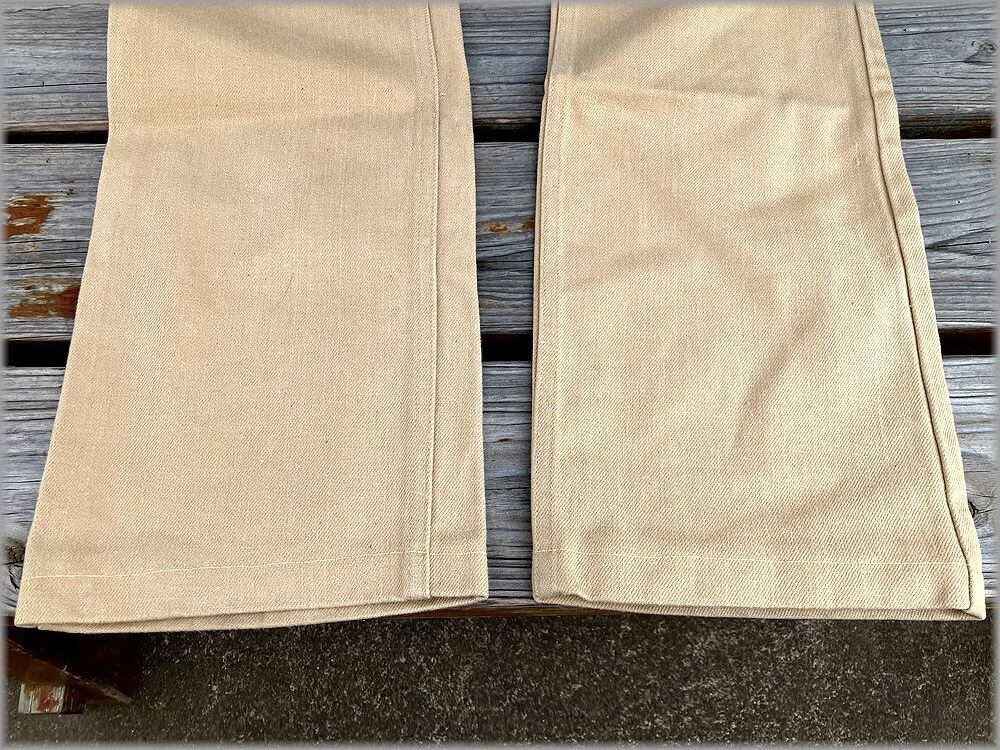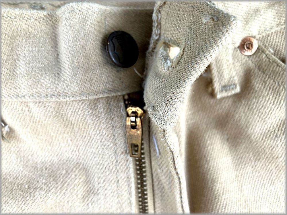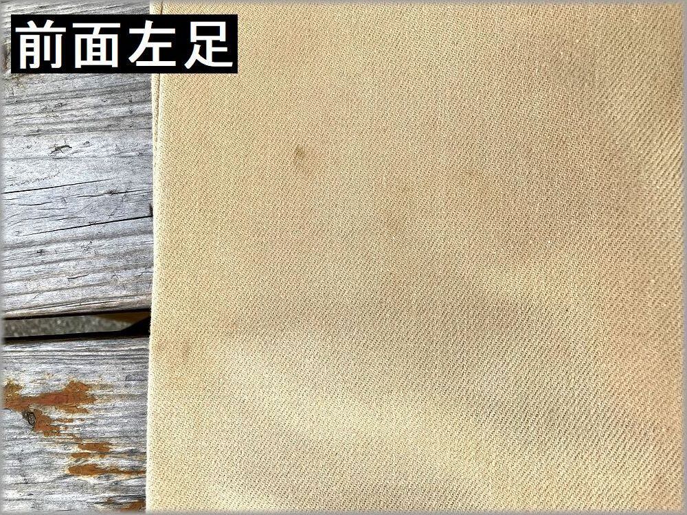 USEDです。画像のような軽い汚れや織りムラが見られますが、目立つような問題はありません。まだウォッシュや使用感は少なめで生地はしっかりしていて、ビンテージ物としては良好な状態かと思います。