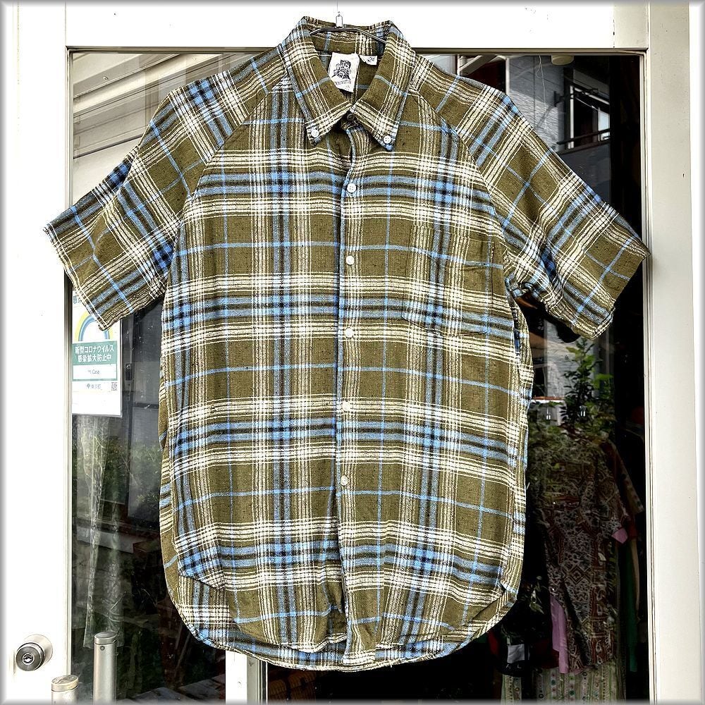 ★KENNINGTON ケニントン 60s 70s ビンテージ チェック柄 3点留め ボタンダウン 半袖シャツ size M★検索 アメリカ アメカジ 古着