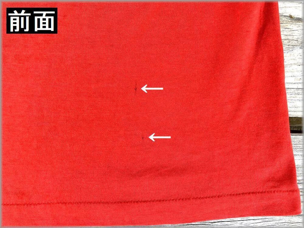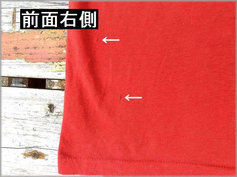 USEDです。首のタグにイタミがあります。プリントに細かいひび割れがあります。ボディに主に画像矢印先の小キズがあります。目立つような問題はありませんのでビンテージ物としては問題無く着用いただける状態かと思いますが、状態が心配な方は店頭でご確認ください。