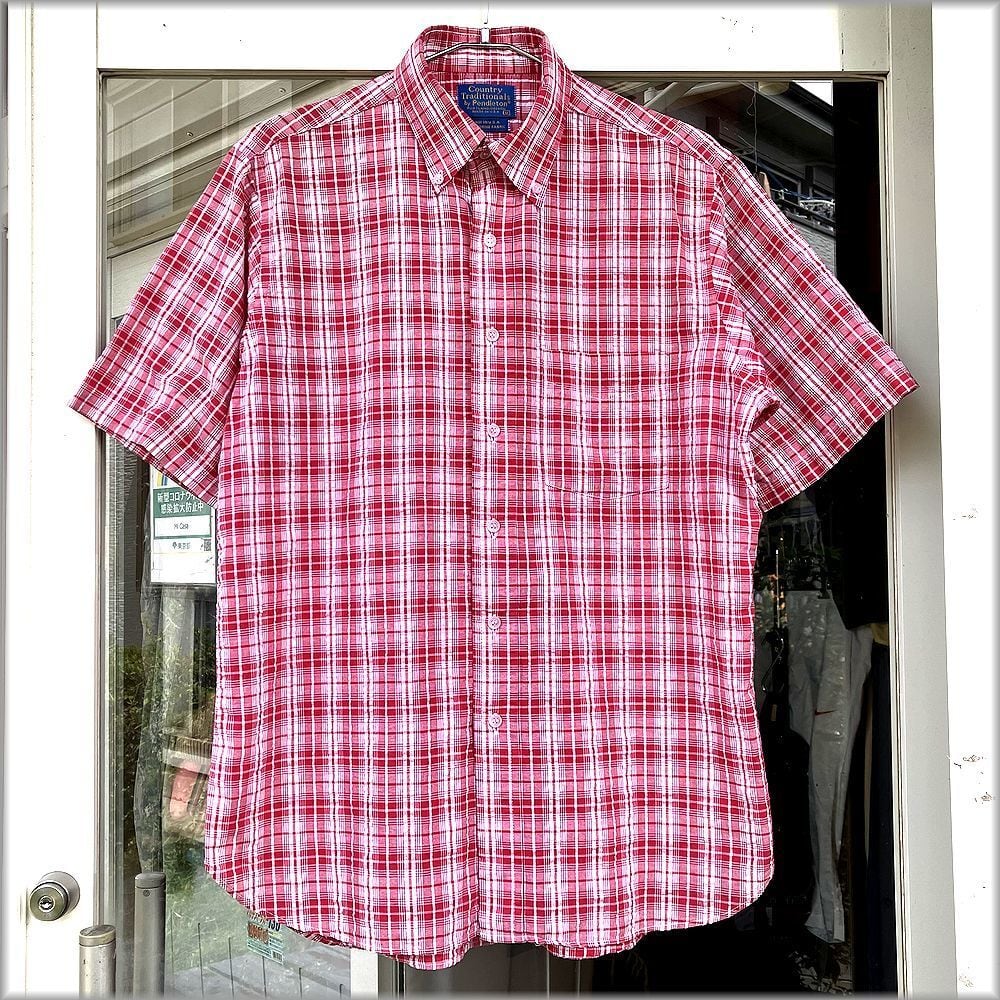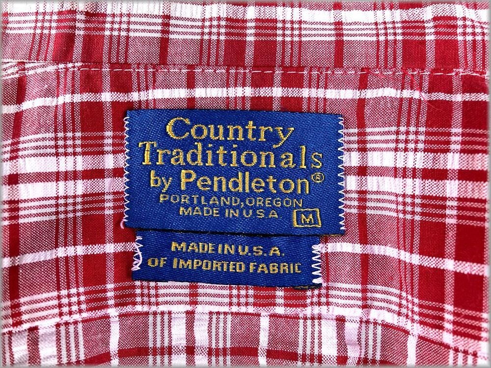 ★Pendleton ペンドルトン Country Traditionals USA製 シアサッカー ボタンダウン 半袖シャツ size M★検索 ビンテージ アメリカ 古着