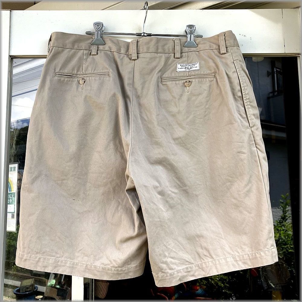 ★ポロ ラルフローレン TYLER SHORT 90s 2タック コットン ショーツ size 36★検索 ショートパンツ 短パン ビンテージ チノパン カーキ 古着