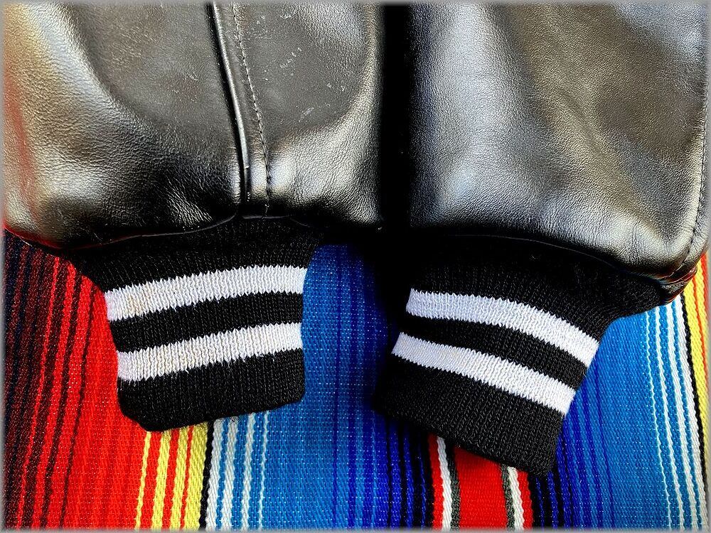 USEDです。右袖リブに若干の汚れがあります。袖革に軽い擦れやシワがあります。ボタンのメッキに少し剥げがあります。特筆するような問題は無く使用感少なくレザーもまだしっかりしていて、USEDとしては良好な状態です。