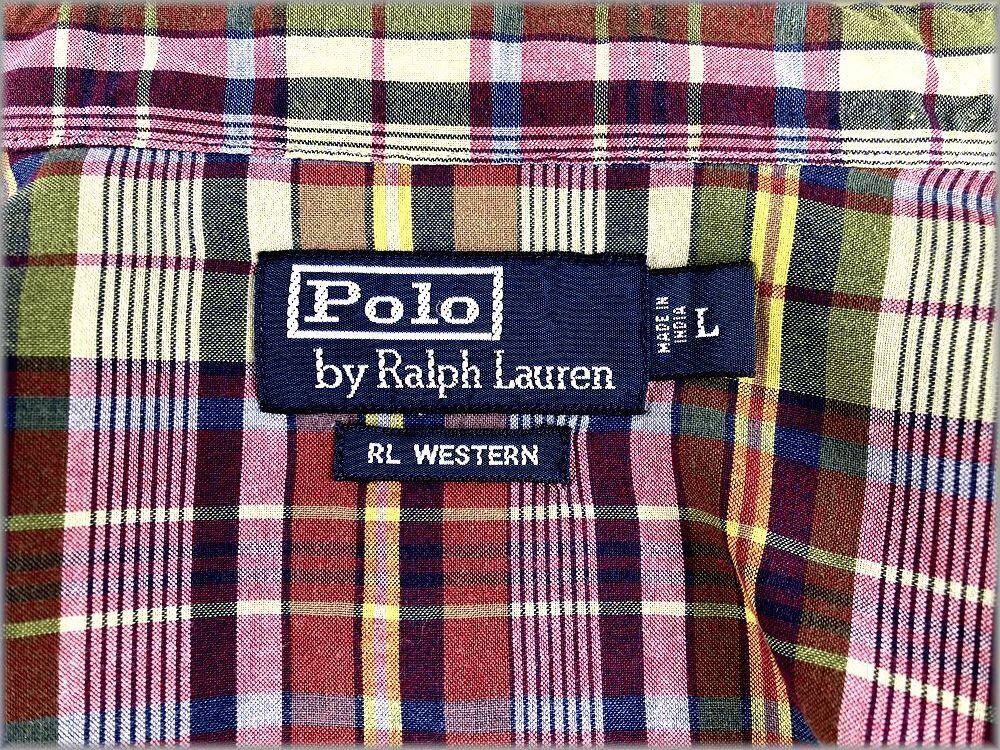 ★ポロ ラルフローレン RL WESTERN 状態良好 マドラスチェック 半袖 ウエスタンシャツ size L★検索 90s ビンテージ RRL ビッグサイズ 古着
