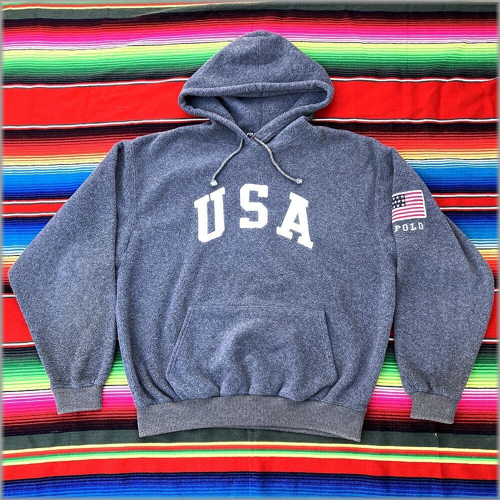 ★ポロスポーツ 90s USA製 フリース パーカー 星条旗 size L 大きめ★検索 ラルフローレン フーディー アメリカ 古着