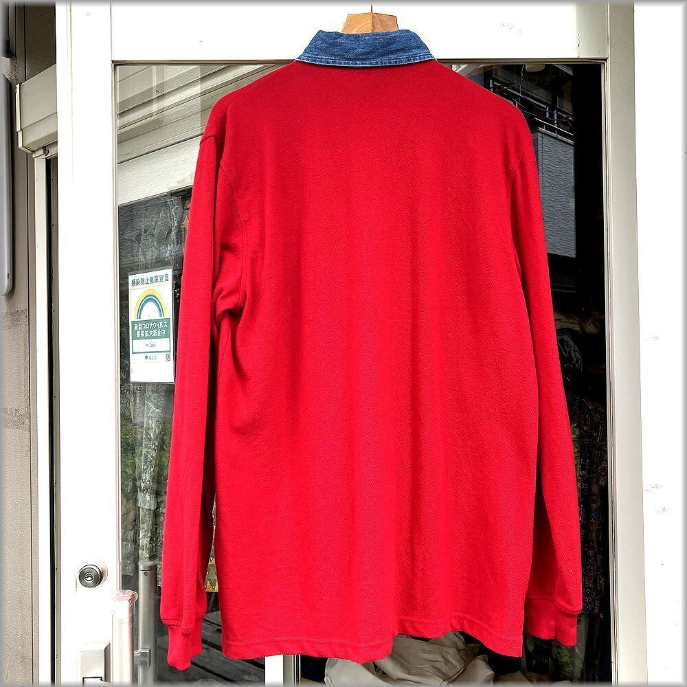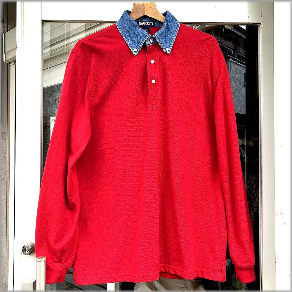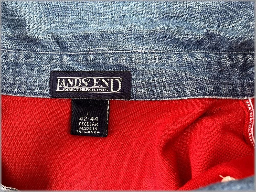 ★ランズエンド LANDS' END 90s デニム襟 ボタンダウン 長袖 ポロシャツ size L★検索 ビンテージ 古着 アメカジ