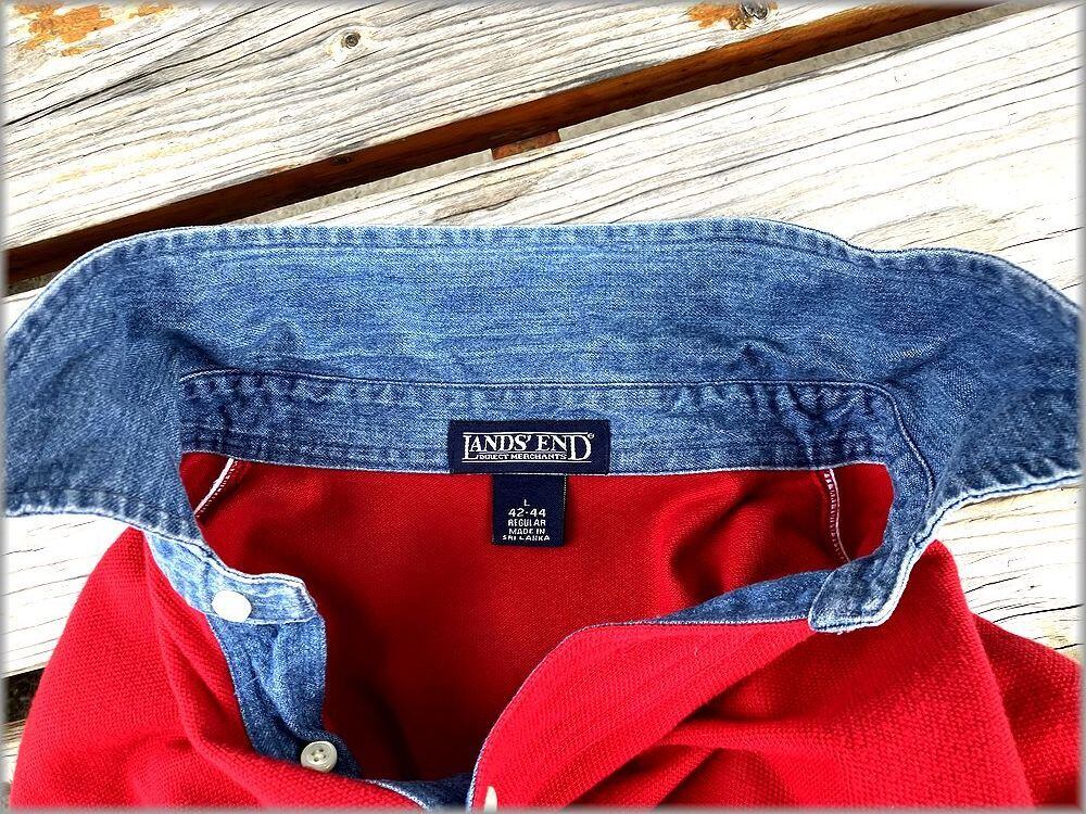 ランズエンド 90s デニム襟 長袖 ポロシャツ