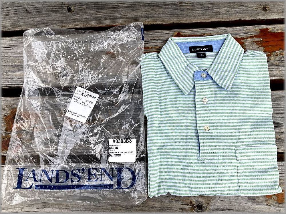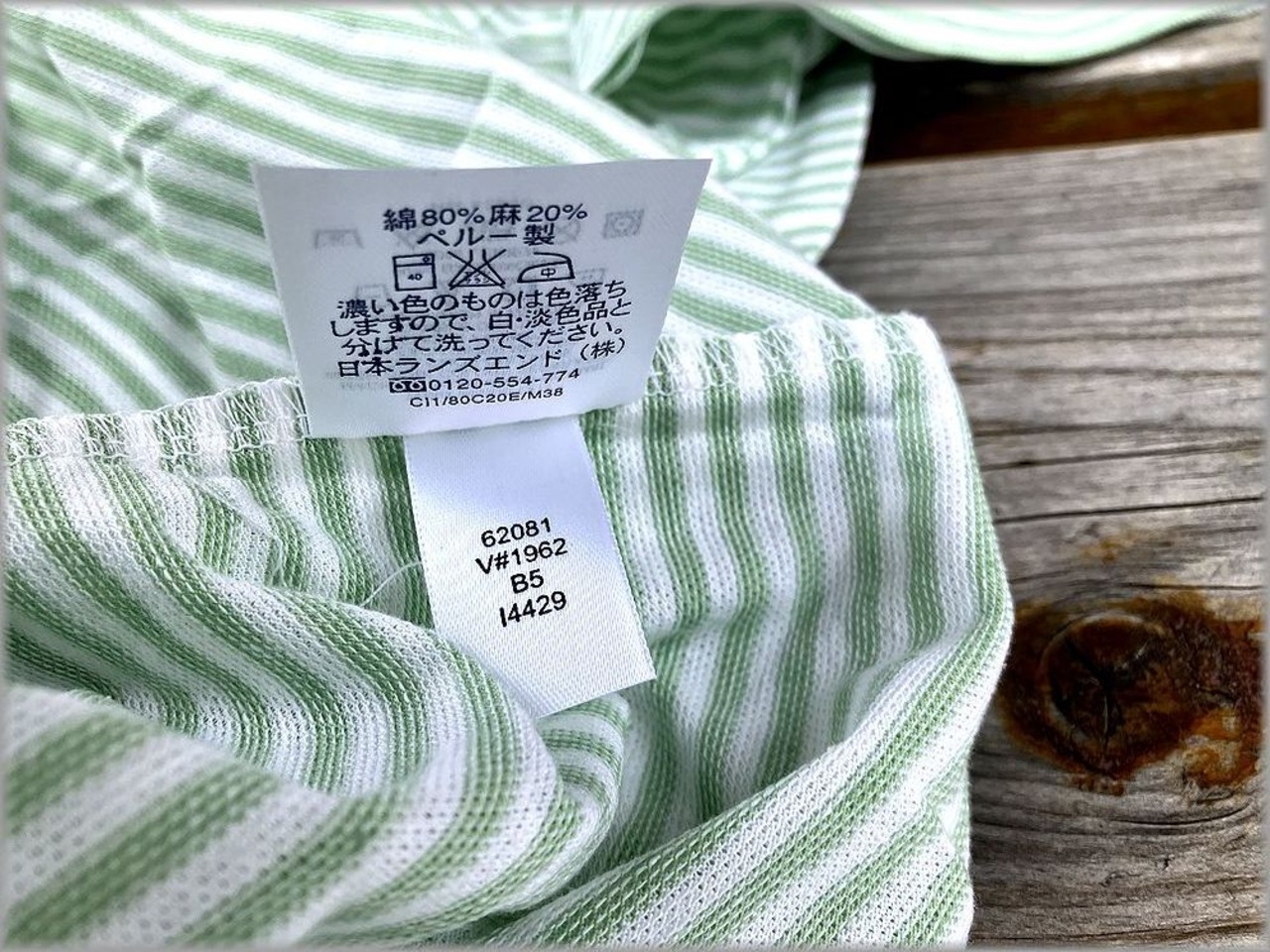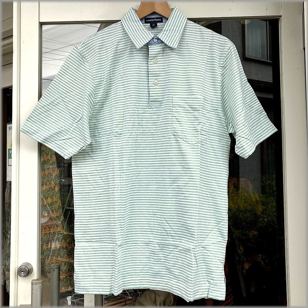 ★ランズエンド LANDS' END 未使用 デッドストック ボーダー柄 半袖 ポロシャツ size M コットン&リネン★