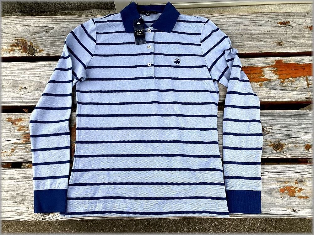 ★ブルックスブラザーズ 346 未使用 デッドストック レディース ボーダー柄 長袖 ポロシャツ size XS★検索 鹿の子