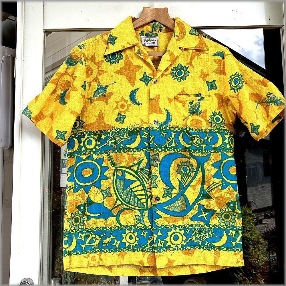 ★MALIHINI 状態良好 70s ビンテージ 開襟 半袖シャツ アロハシャツ ハワイアンシャツ★検 オープンカラー 古着 USA製 アメリカ