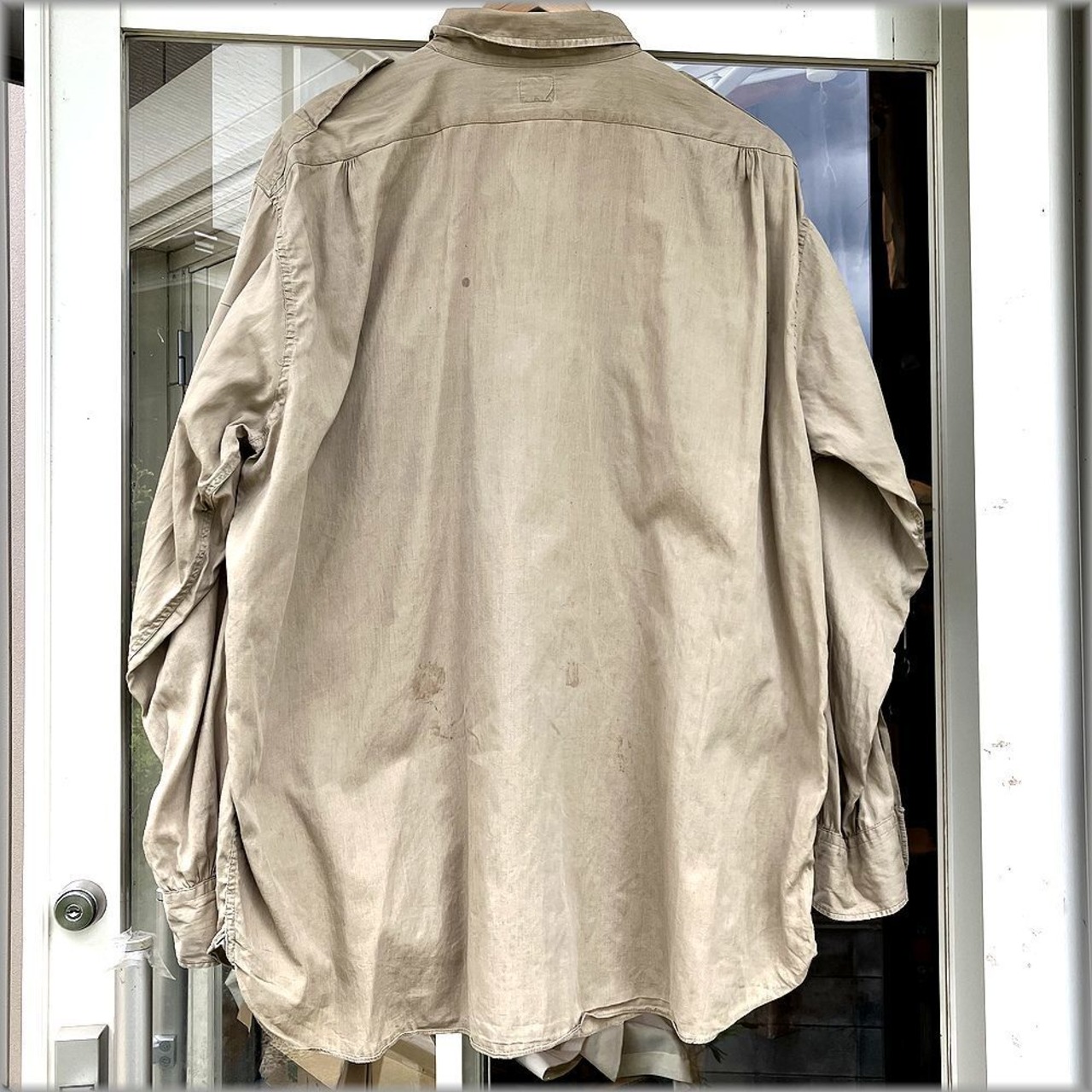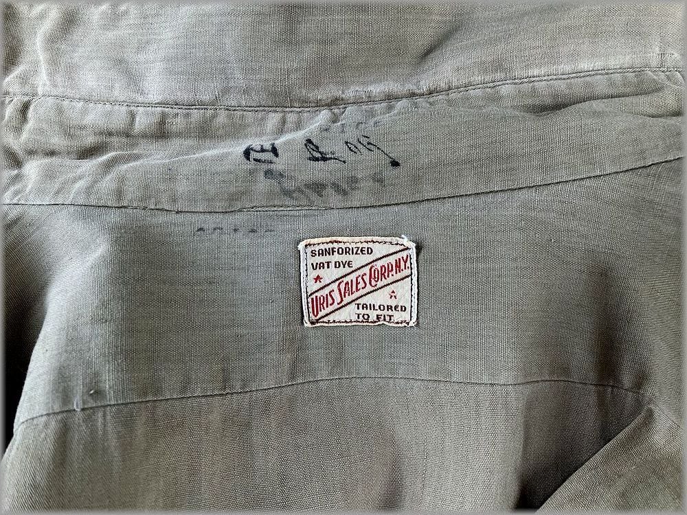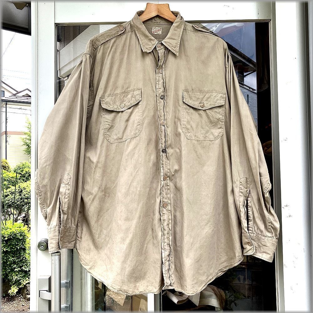 ★40s 50s URIS SALES CORP. N.Y. ビンテージ ミリタリー 長袖シャツ マチ付き★検索 米軍 ワーク カーキ オフィサー アメリカ 古着