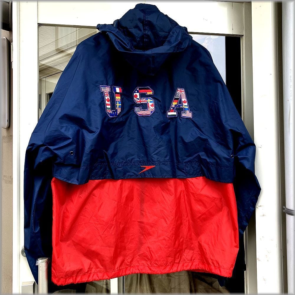 ★SPEEDO スピード 90s フード付き ナイロン ジャケット USA size XL★検索 ビンテージ パーカー 古着 ビッグサイズ ヒップホップ