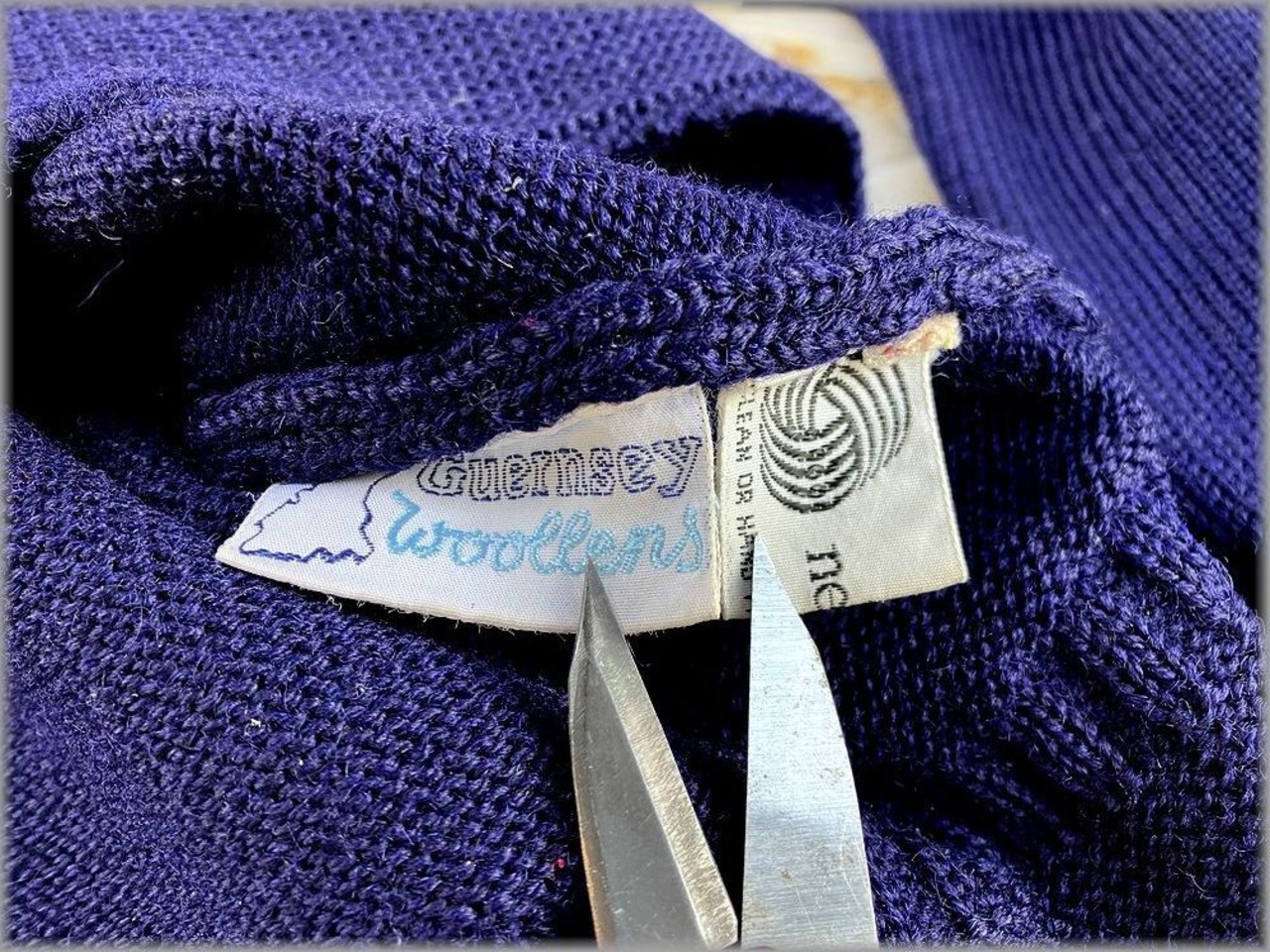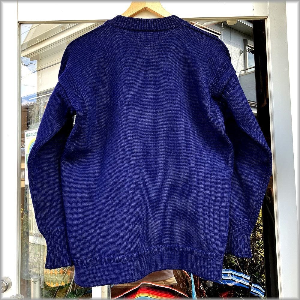 ★GUERNSEY WOOLLENS ガンジーウーレンズ ビンテージ ニット セーター size 40 紺色 MADE IN GUERNSEY BRITISH ISLES★検索 古着 ウール