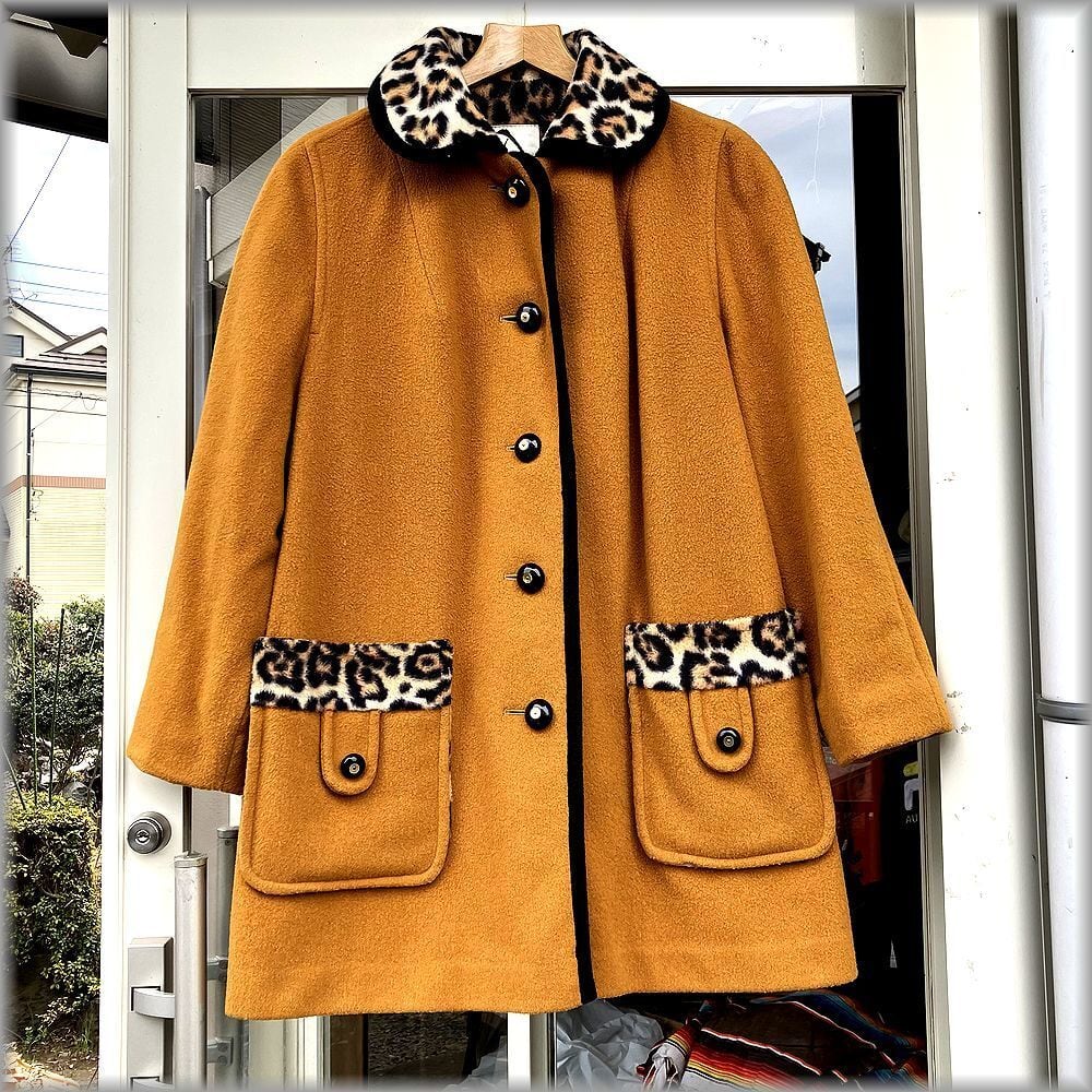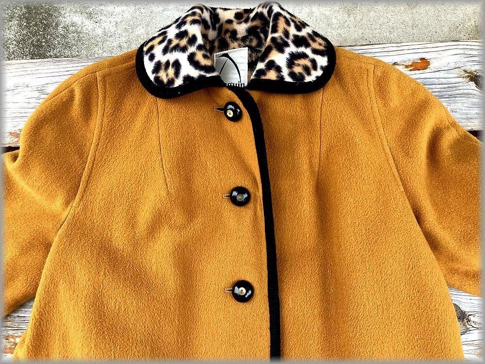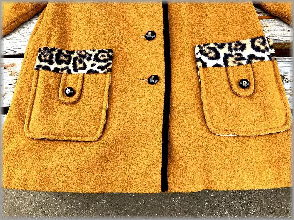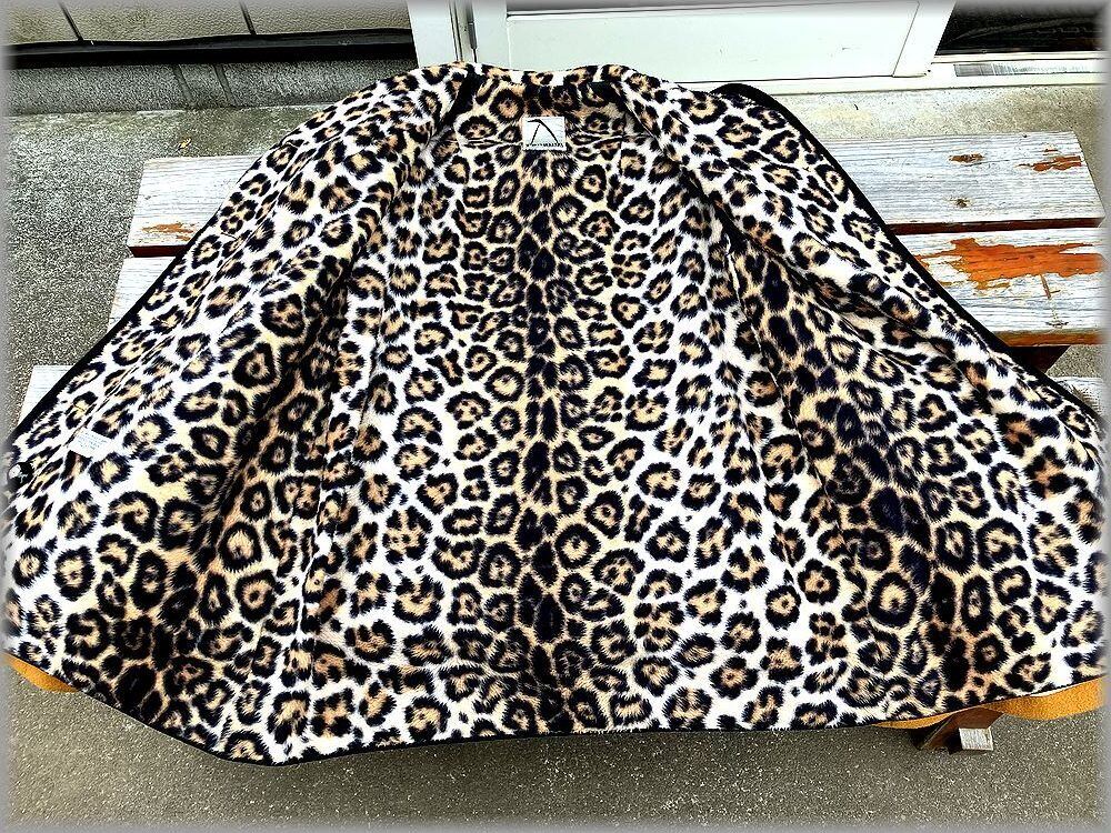 襟から裏側と、ポケット口がヒョウ柄になっていて、とてもオシャレで珍しいコートです。