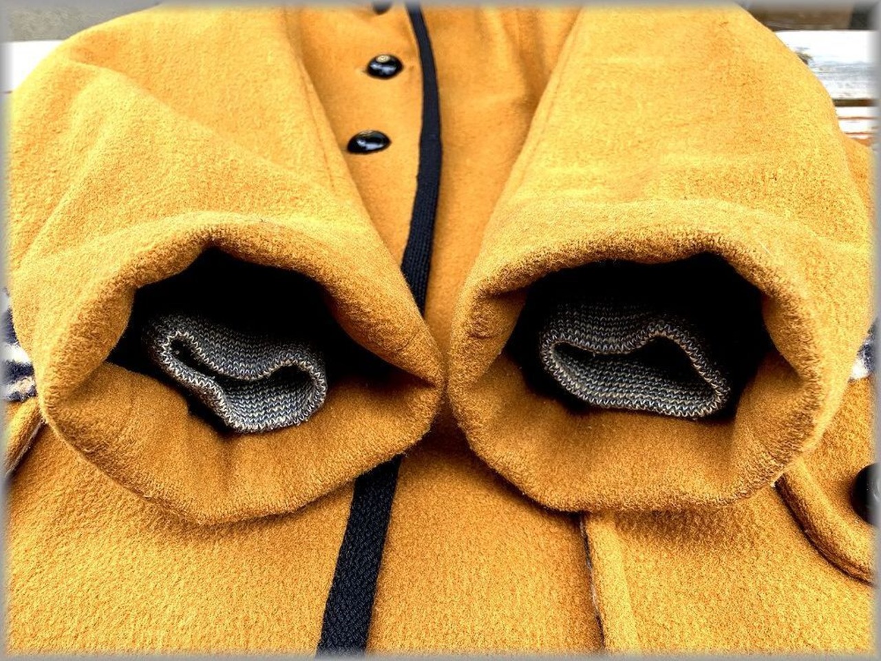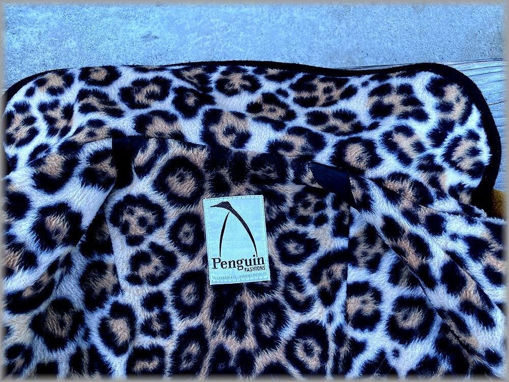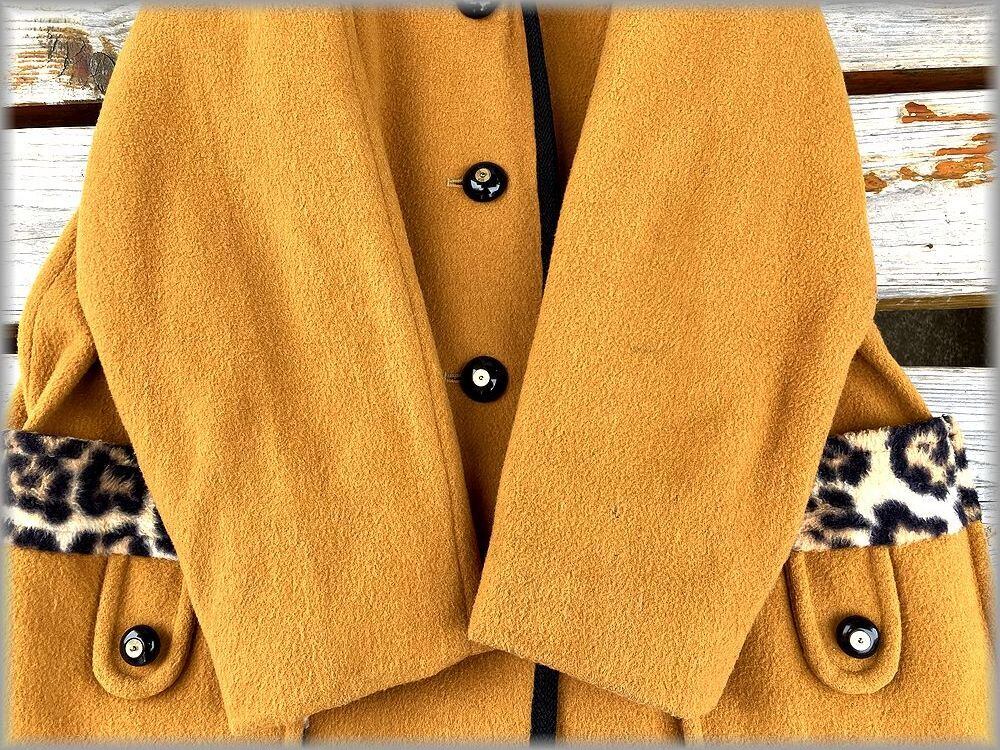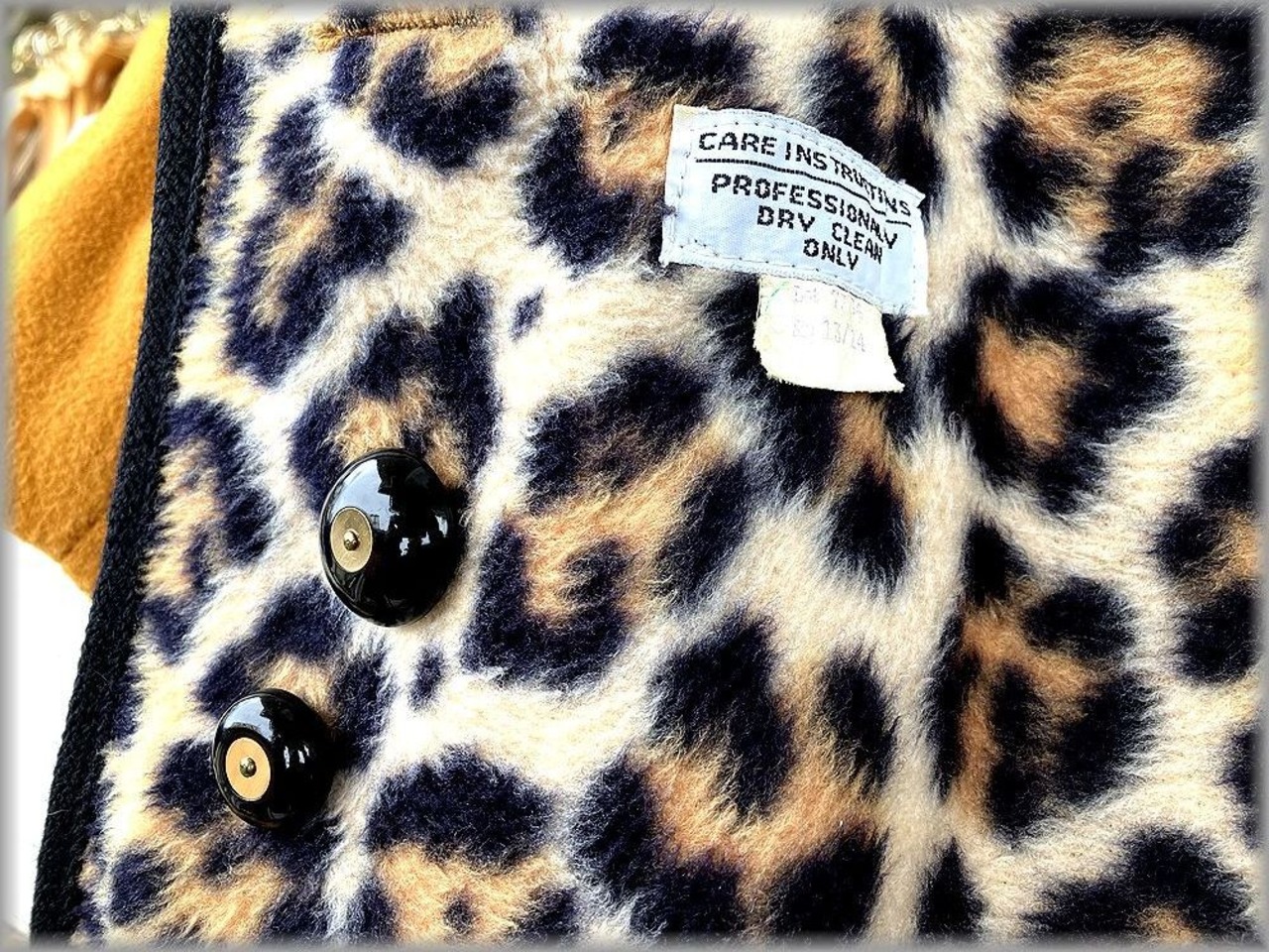 襟から裏側と、ポケット口がヒョウ柄になっていて、とてもオシャレで珍しいコートです。